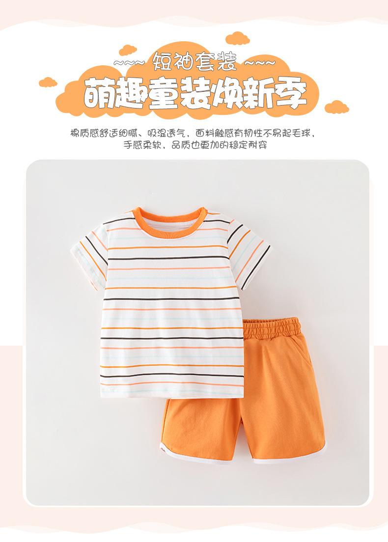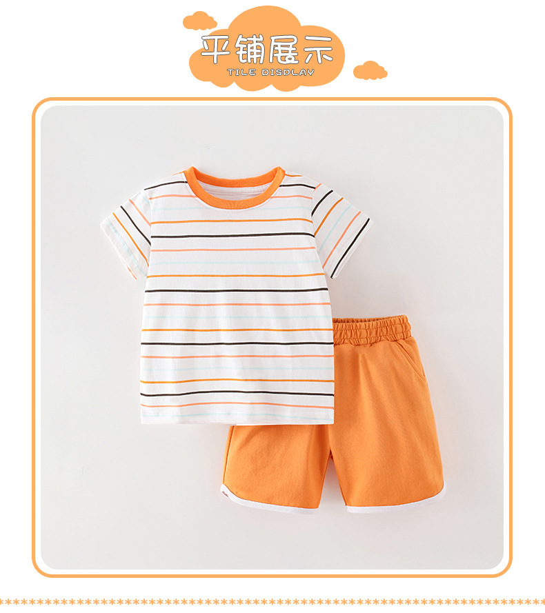 Malwee 아이들의 2 조각 여름 새로운 유럽과 미국 아이들의 서양식 줄무늬 최고 캐주얼 바지 소년 세트스토어 가기