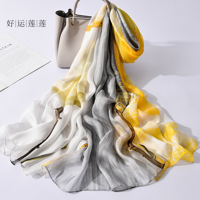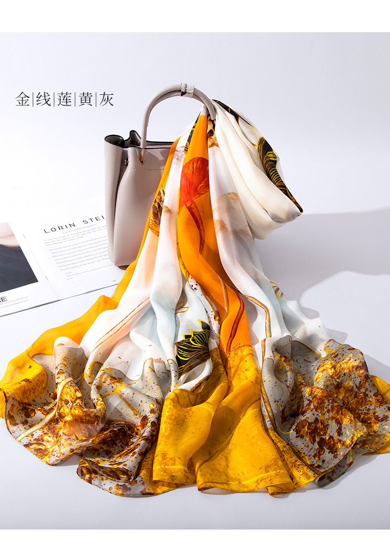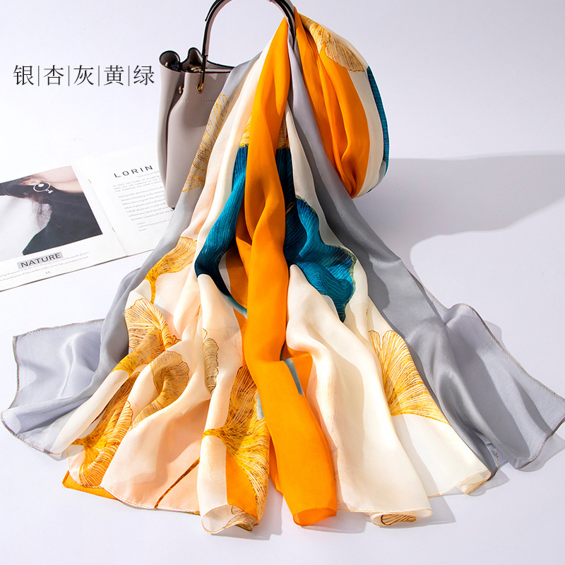 100 실크 스카프 여성 봄과 가을 실크 롱 스카프 2023 새로운 항목 럭셔리 뽕나무 실크 어머니 스카프 선물 상자스토어 가기