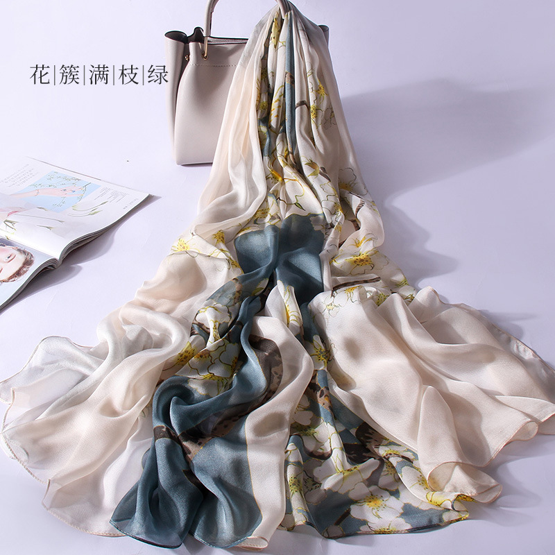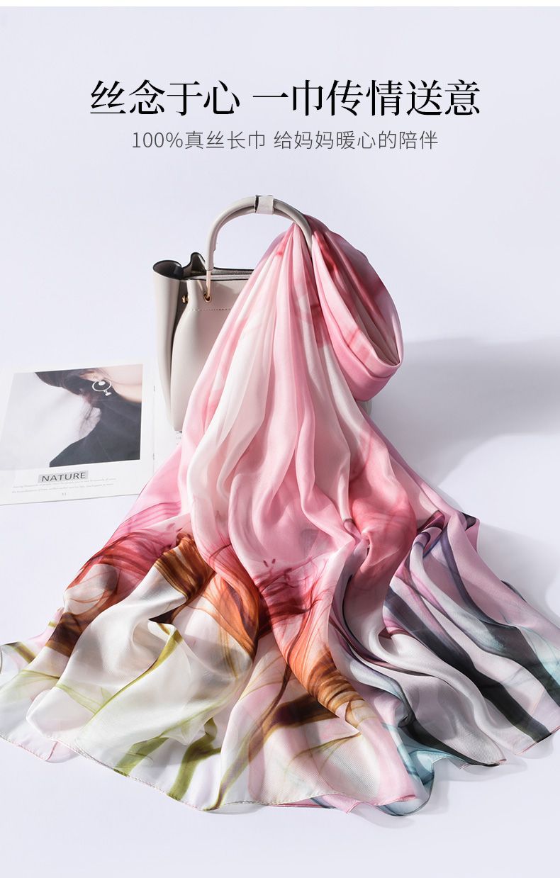 100 실크 스카프 여성 봄과 가을 실크 롱 스카프 2023 새로운 항목 럭셔리 뽕나무 실크 어머니 스카프 선물 상자