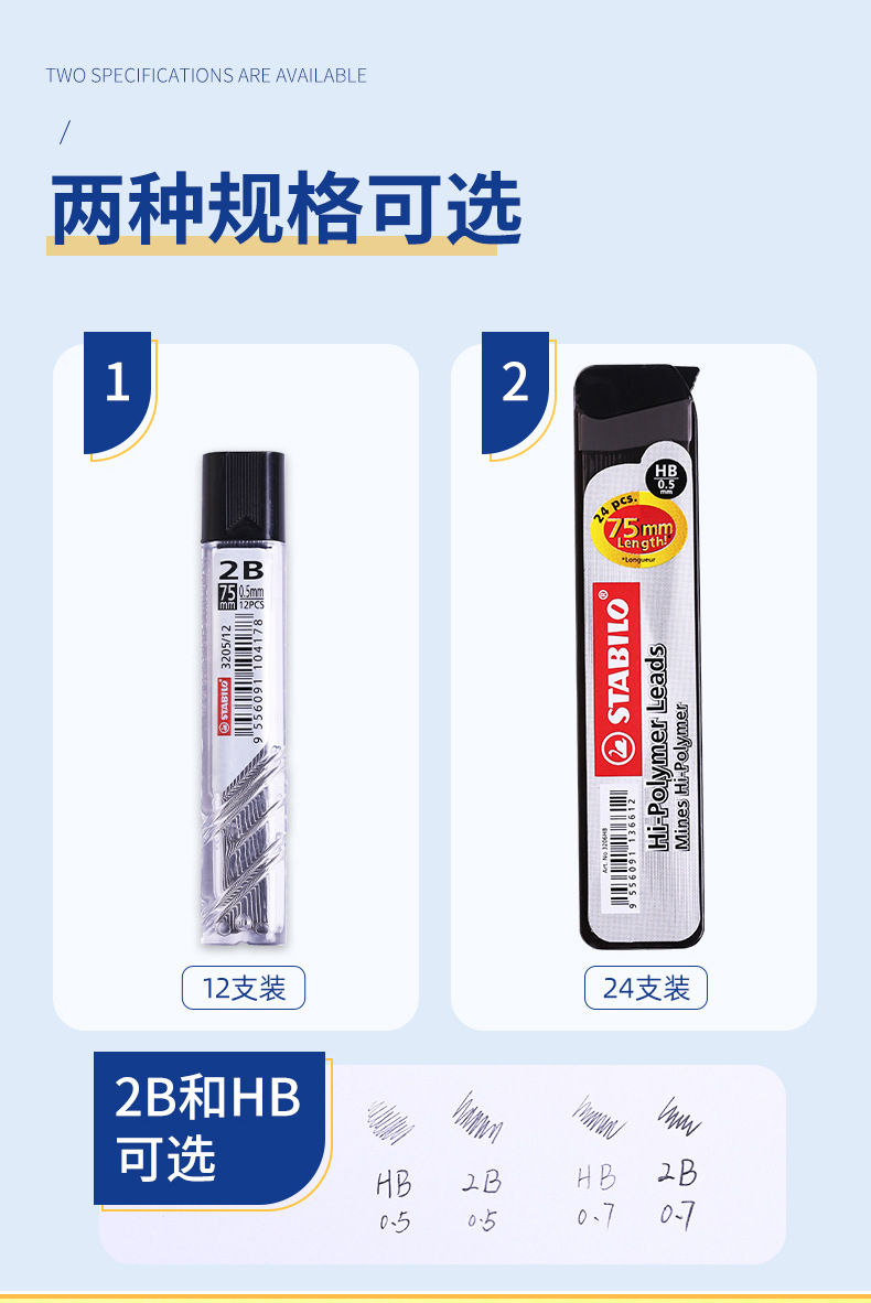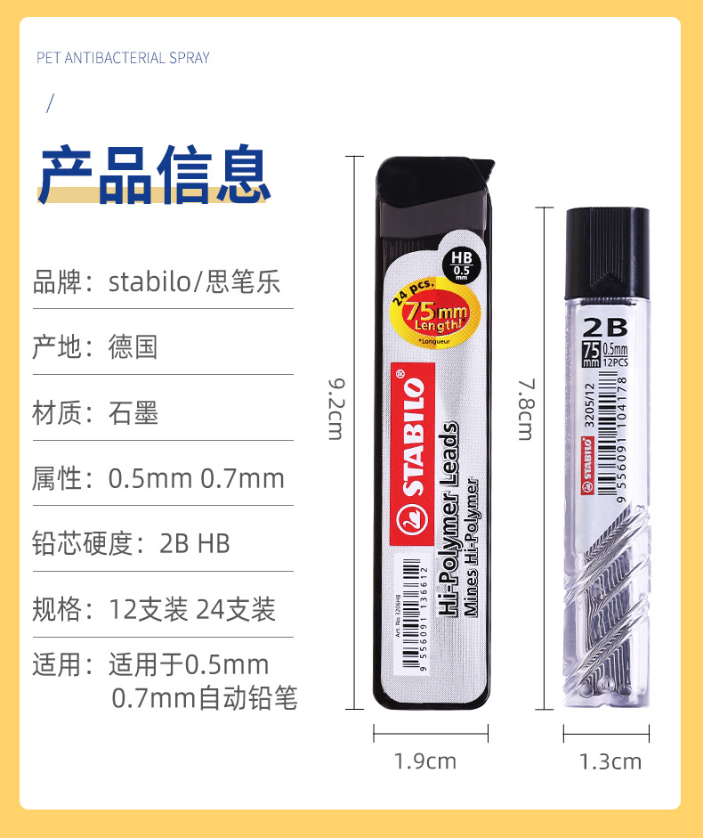도매 독일 stabilo 3206 연필 리드 0.50.7mm 리드 슈퍼 부드러운 자동 연필 리드스토어 가기