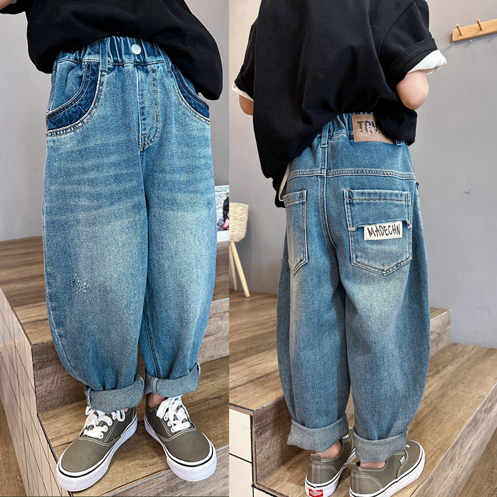 어린이 청바지 레트로 2024 새 소년 바지 봄 가을 느슨한 한국 유행 올매치 대형 어린이 바지스토어 가기