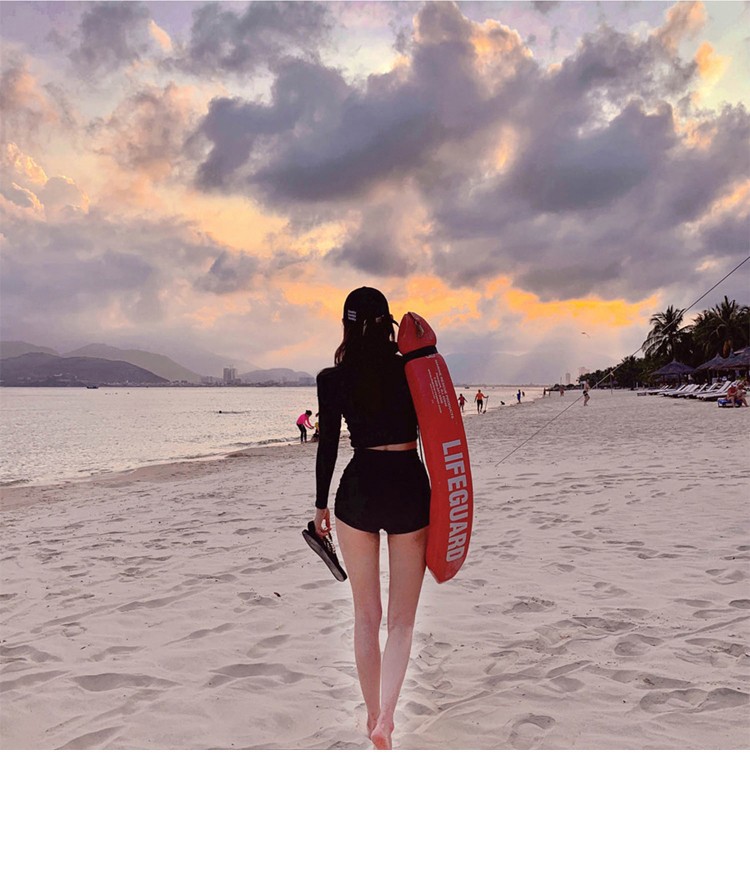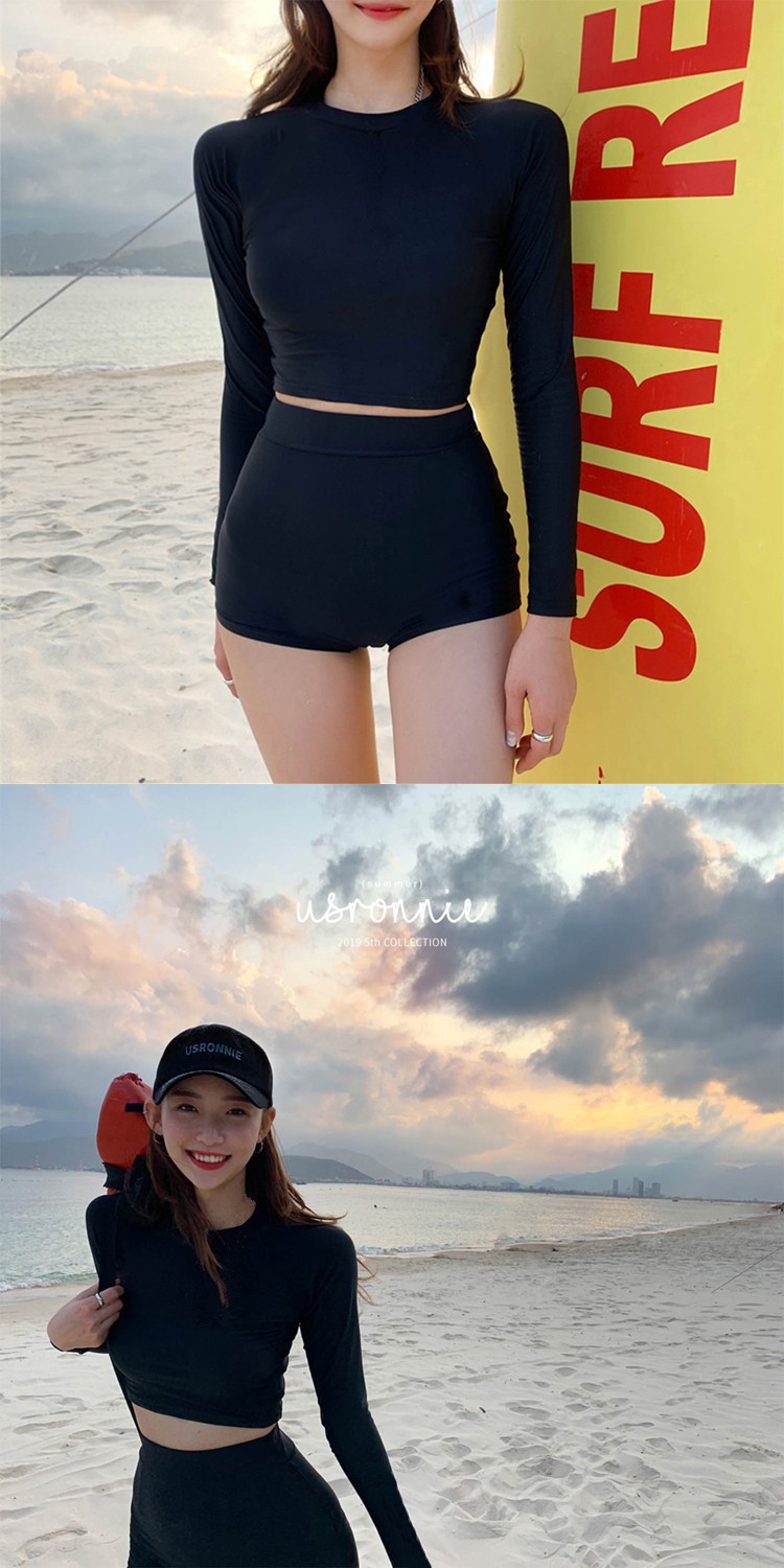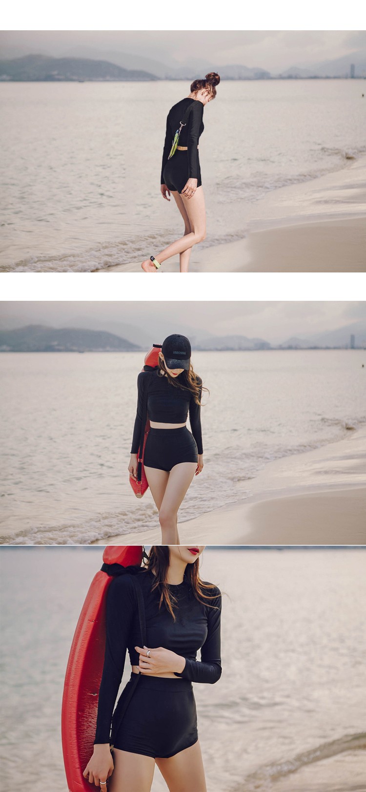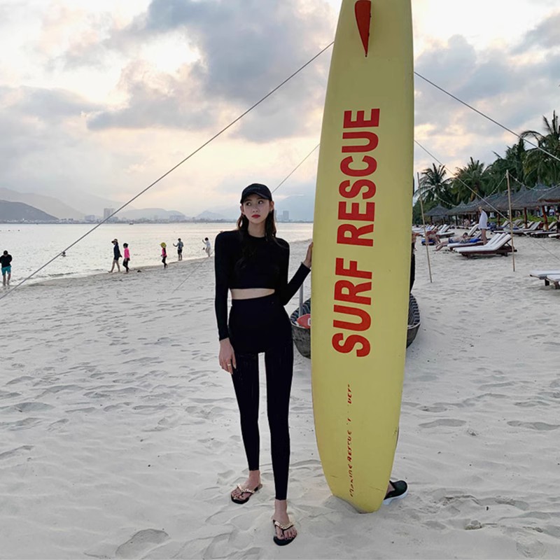 썬 프루프 긴팔 수영복 여성용 여름 스플릿 블랙 복서 고기 학생 가슴 패드가있는 보수적 인 스포츠 수영복스토어 가기