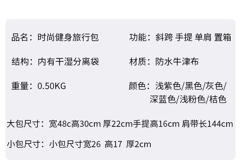 새로운 단거리 여행 가방 건식 및 습식 분리 체육관 가방 수영 가방 대용량 휴대용 수하물 가방 패션 수하물 가방