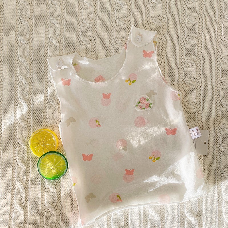 Dini Doudou 신생아를위한 작은 조끼 배꼽 관리 아기 옷 아기 소녀를위한 순면 여름 민소매 탑 얇은스토어 가기