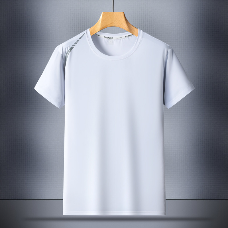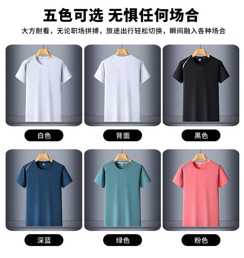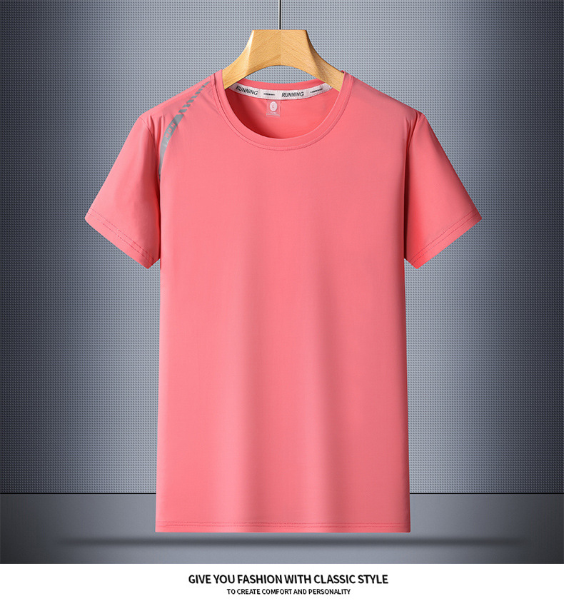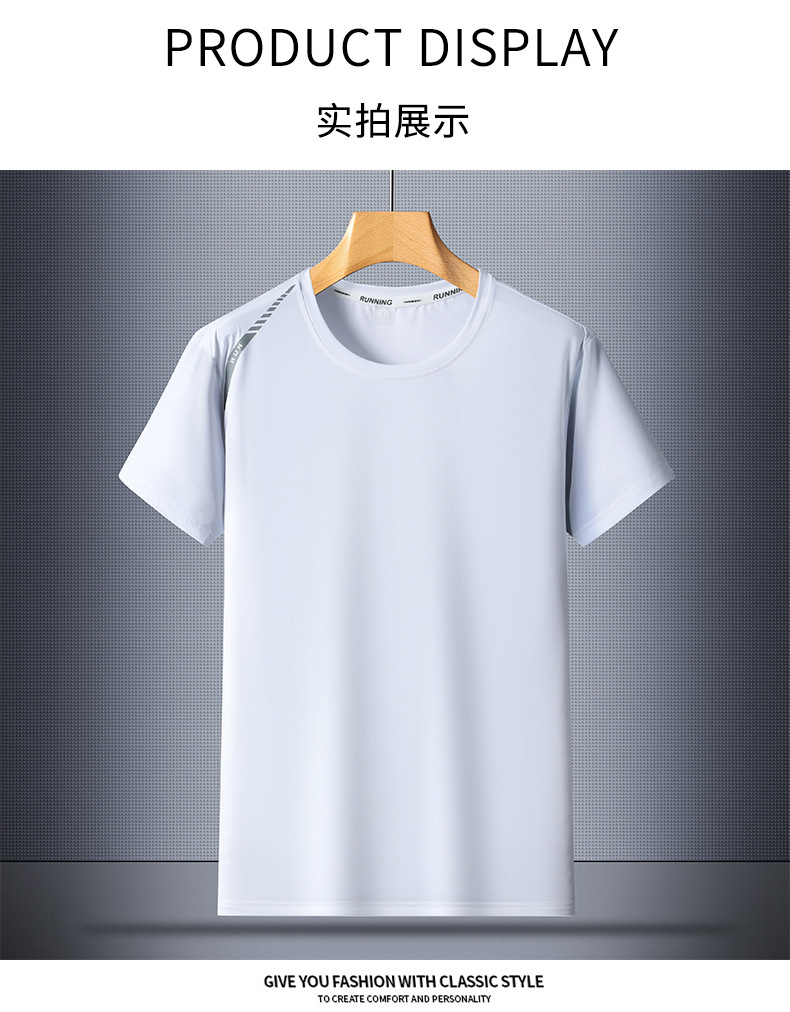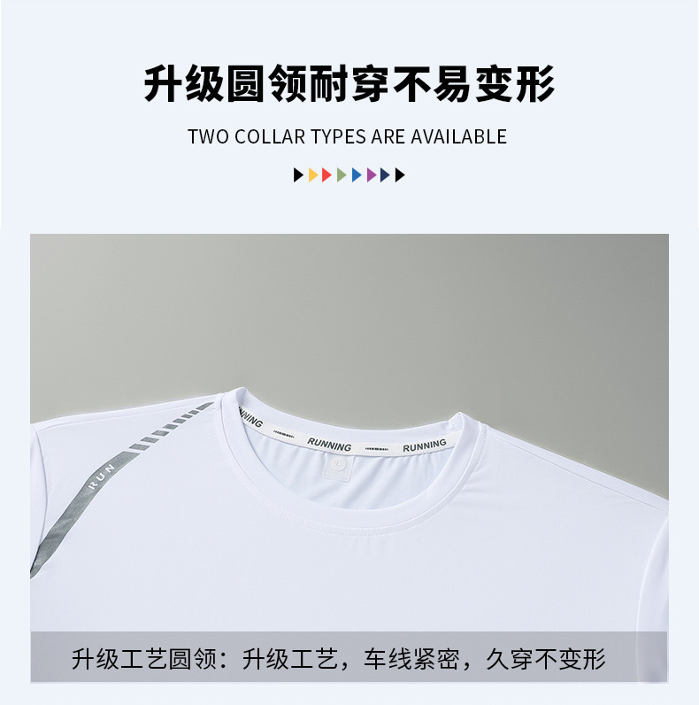 여름 새 남성용 아이스 실크 반팔 티셔츠 얇은 청소년 스포츠 레저 반사 스트립 아이스 실크 티셔츠 남성용 라운드 넥스토어 가기