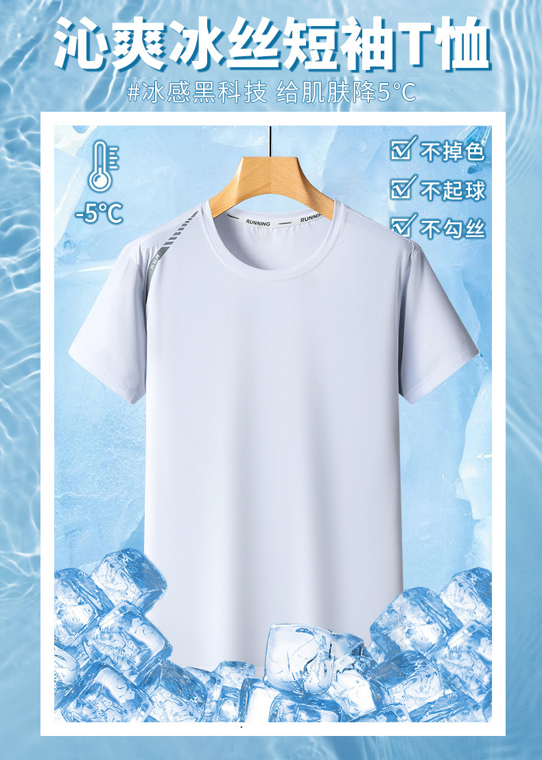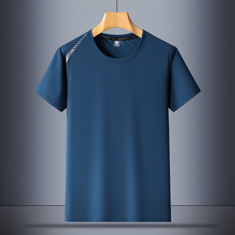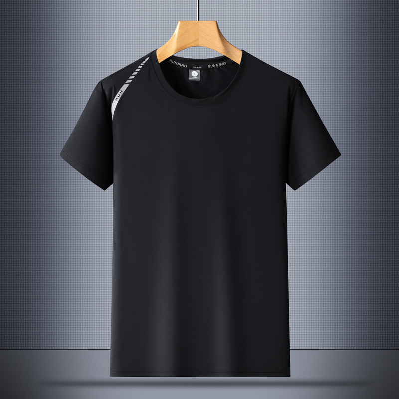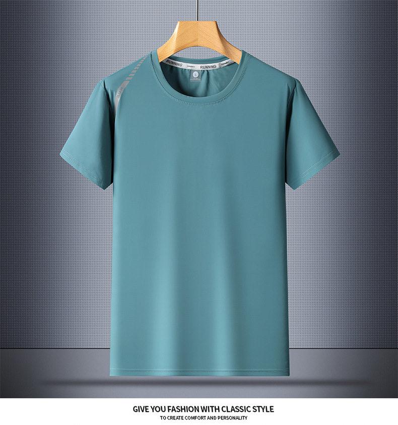 여름 새 남성용 아이스 실크 반팔 티셔츠 얇은 청소년 스포츠 레저 반사 스트립 아이스 실크 티셔츠 남성용 라운드 넥