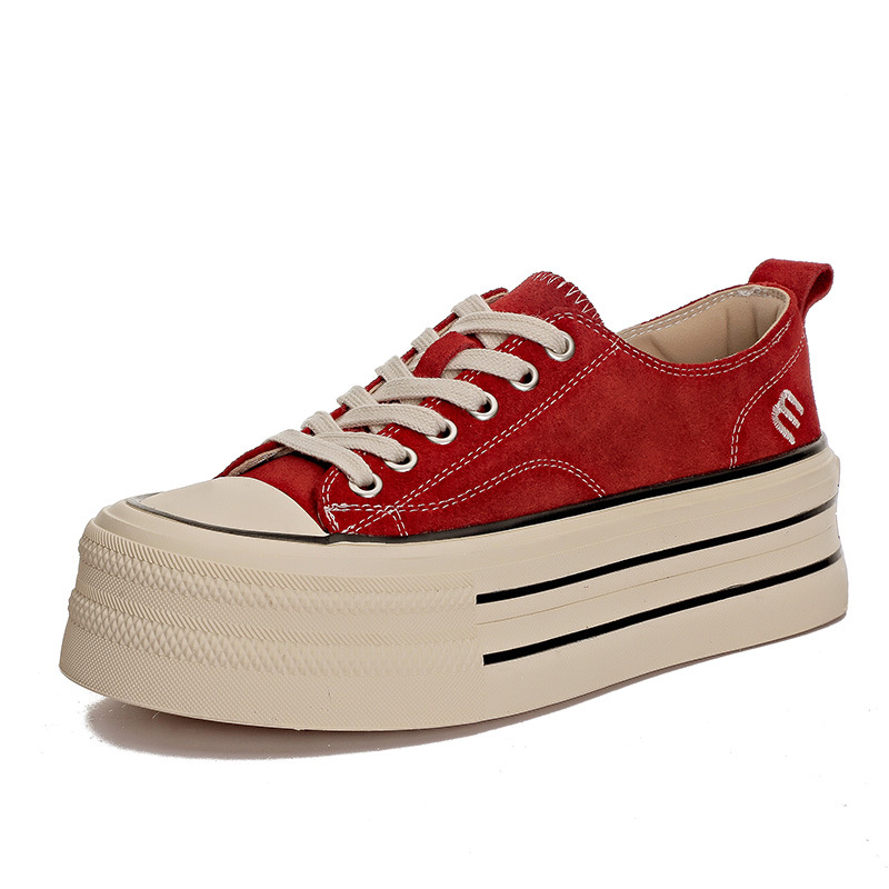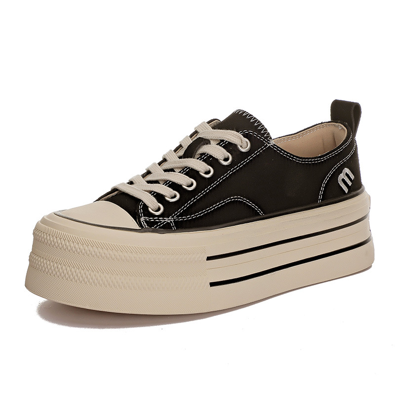 여성을위한 벨벳 두꺼운 밑창 비스킷 신발 봄, 가을 새로운 한국 스타일 고조 캐주얼 스니커즈 블랙 스니커즈 ins 트렌드스토어 가기
