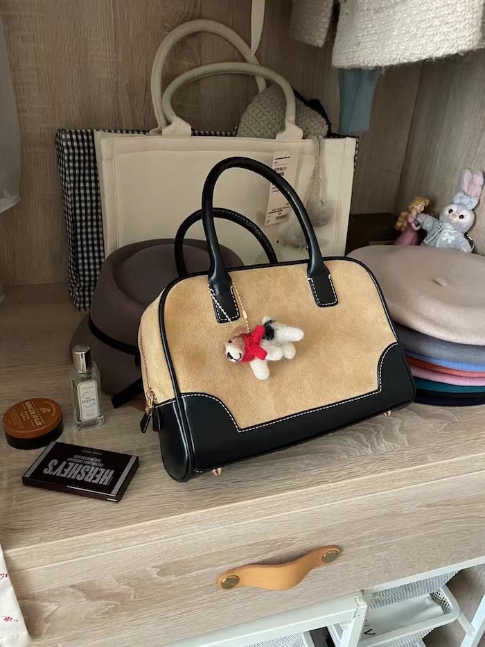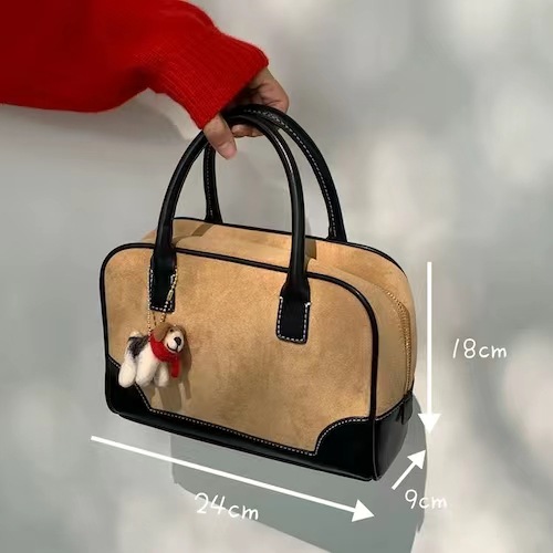 수제 스웨이드 버킷백, 한국 블로거 여성 가방, 가을 겨울 숄더백, 크로스백, 스몰 스퀘어백