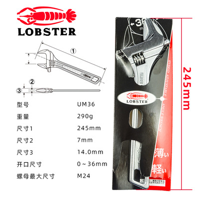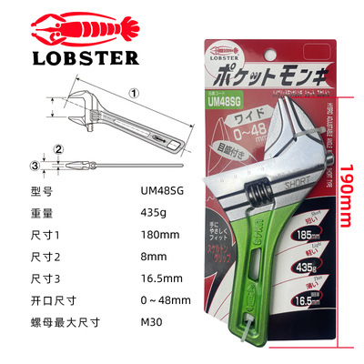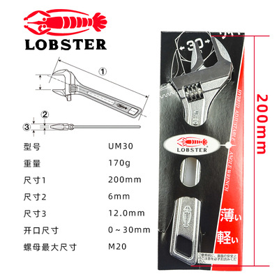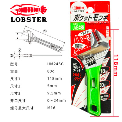 일본 새우 브랜드 LOBSTER UM24/30/36 UM24SG 200mm 가볍고 얇은 짧은 조정 가능한 렌치스토어 가기