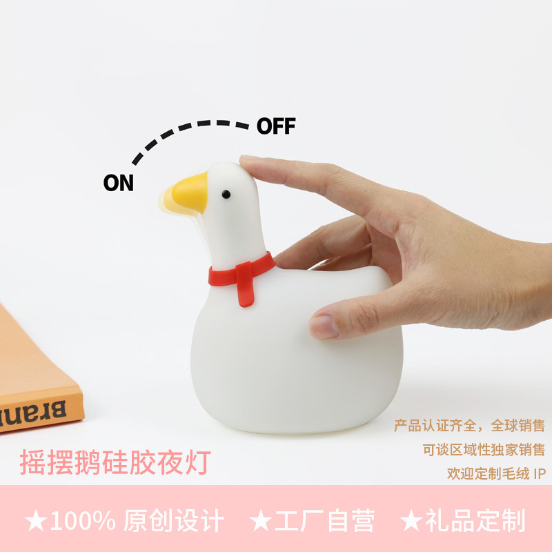 공장 직접 스윙 거위 야간 조명 실리콘 귀여운 침실 눈 보호 가볍게 두드리는 침대 옆 램프 여성 창조적 인 선물 새로운
