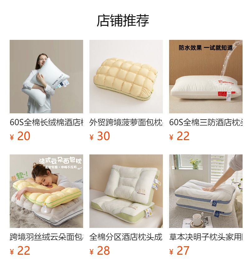 공장 직접 판매 면 2층 직사각형 반추력 베개 코어, 귀에 압력 없음, 세탁 가능한 베개, 생방송 인터넷 연예인 풀 헤드스토어 가기