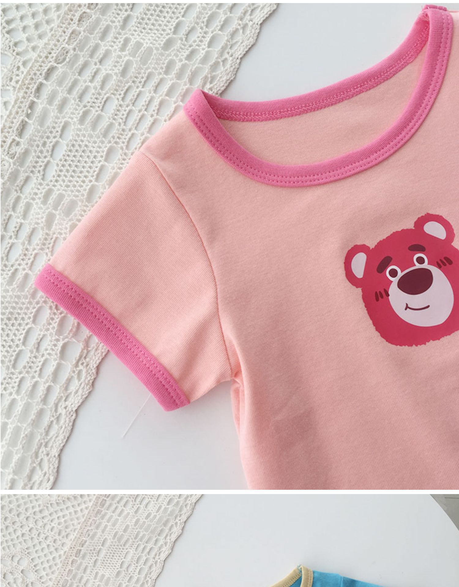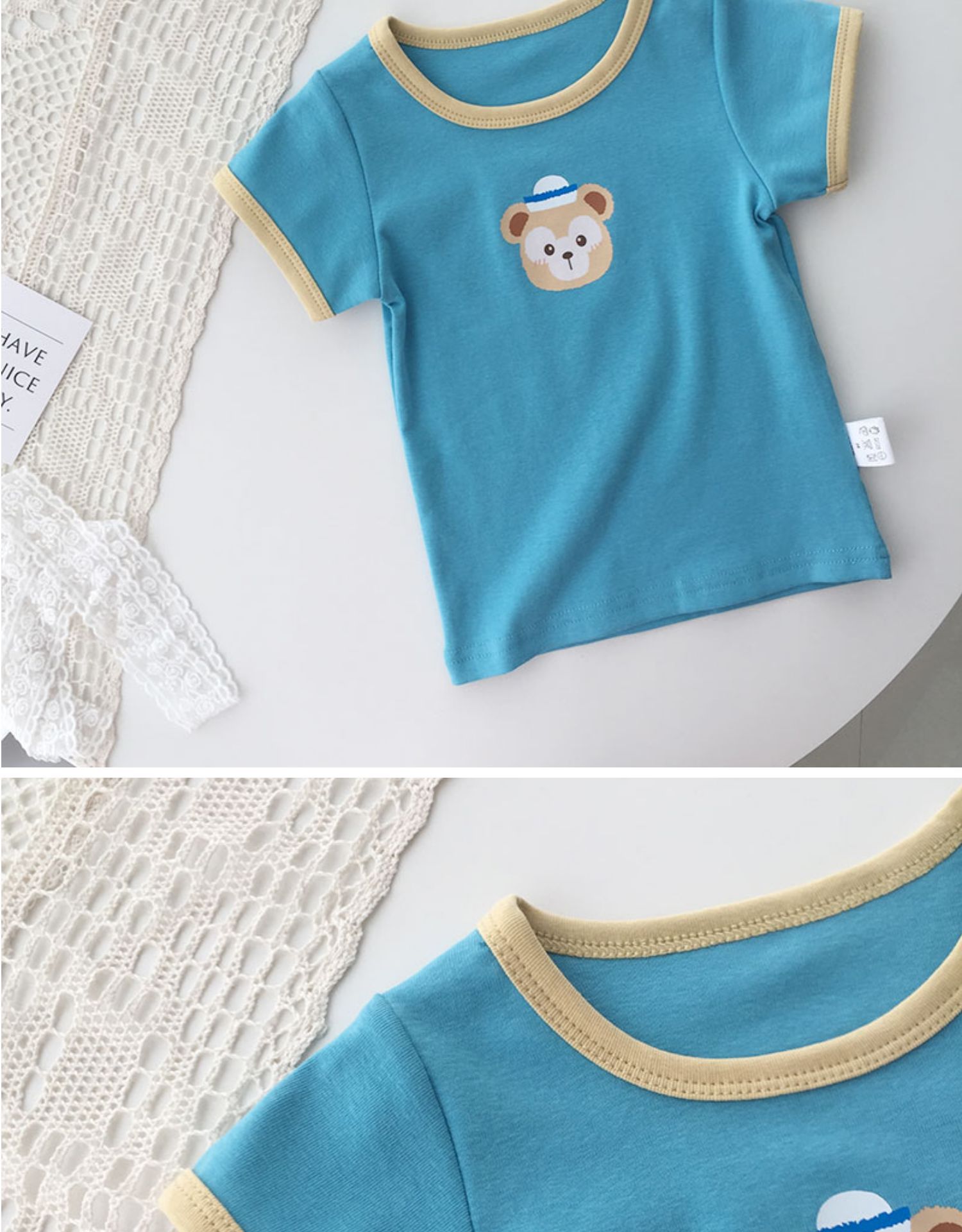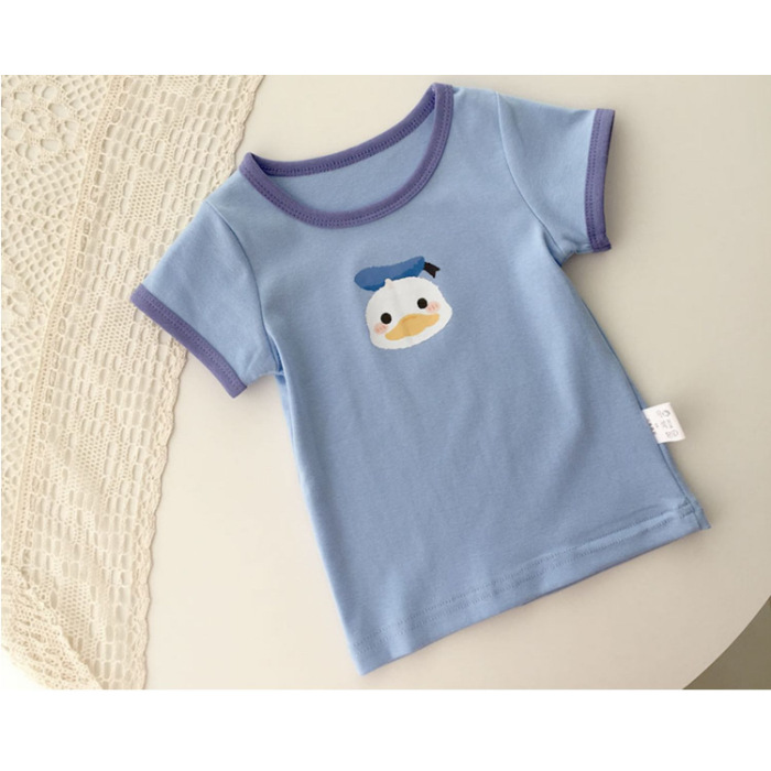 소년과 소녀 티셔츠 중소 어린이를위한 2025 유행 새 여름 옷 라운드 넥 반팔 티셔츠 소녀 대비 색 탑 유행스토어 가기