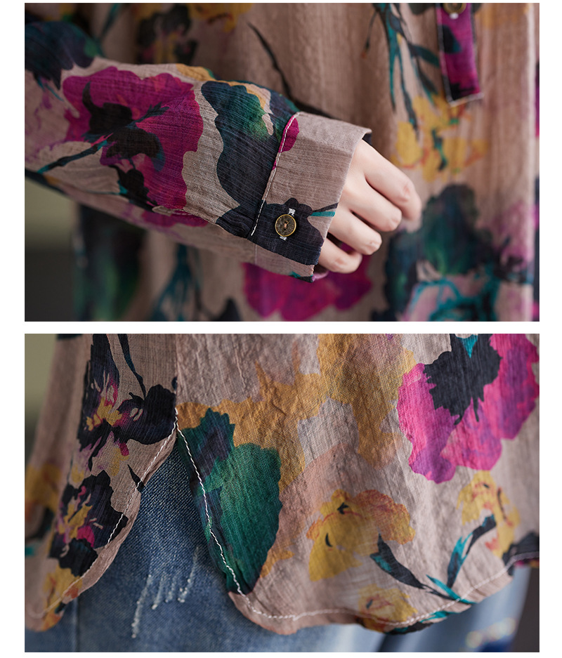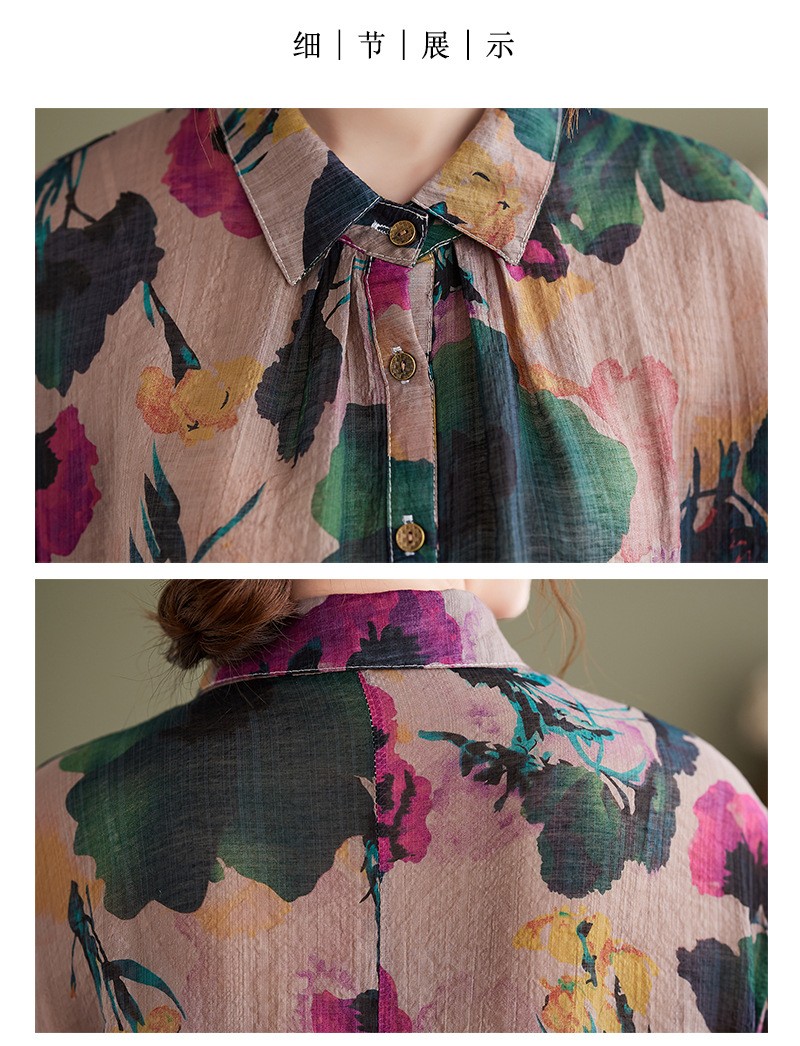 리얼 샷 봄과 가을 새로운 예술적 복고풍 쉬폰 프린트 셔츠 옷깃 우아하고 편안한 홍콩 스타일 탑스토어 가기