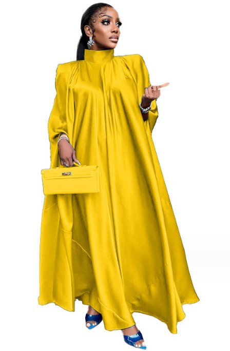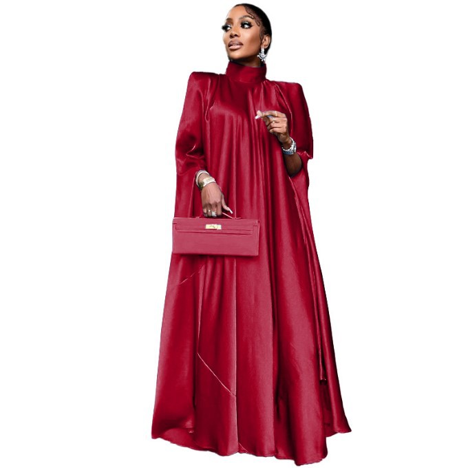 2023 유럽과 미국 대외 무역 동남아시아 여성의 높은 칼라 느슨한 중동 가운 새틴 원피스 유럽과 미국 여성스토어 가기
