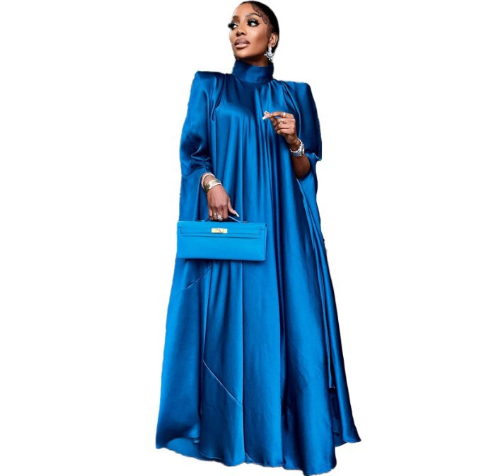 2023 유럽과 미국 대외 무역 동남아시아 여성의 높은 칼라 느슨한 중동 가운 새틴 원피스 유럽과 미국 여성