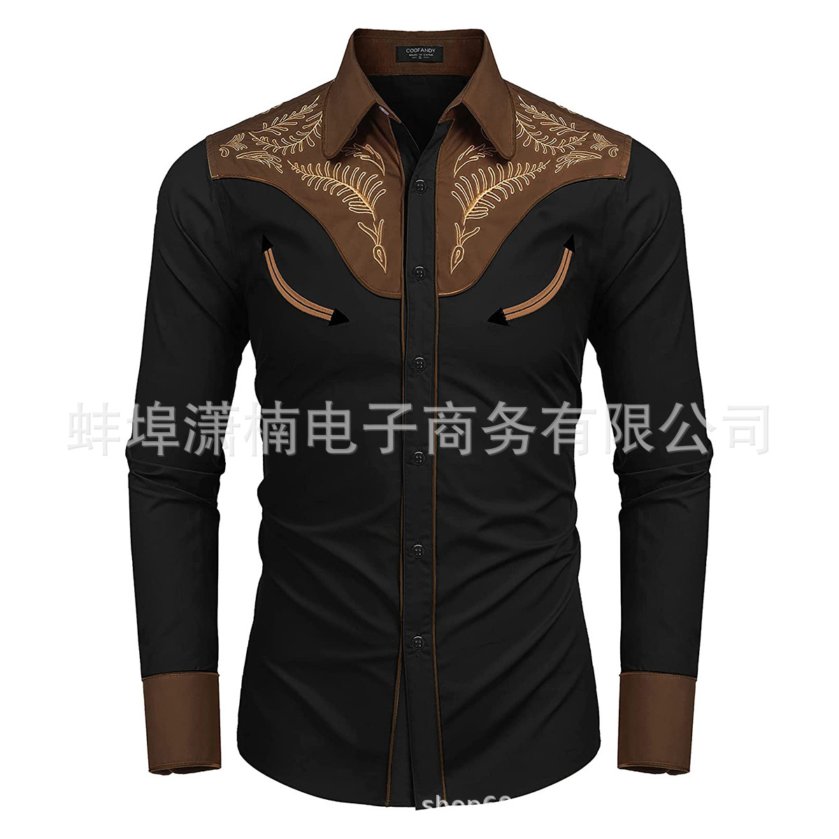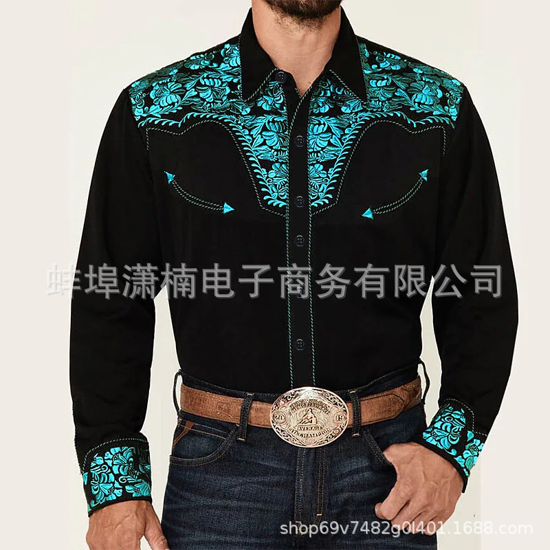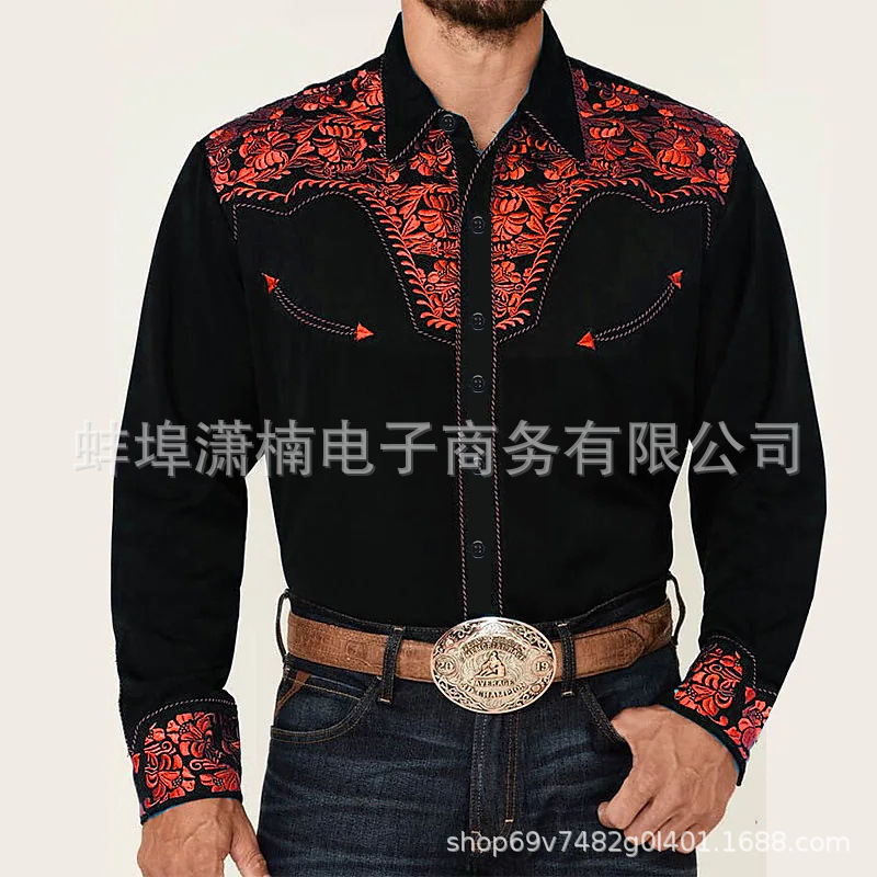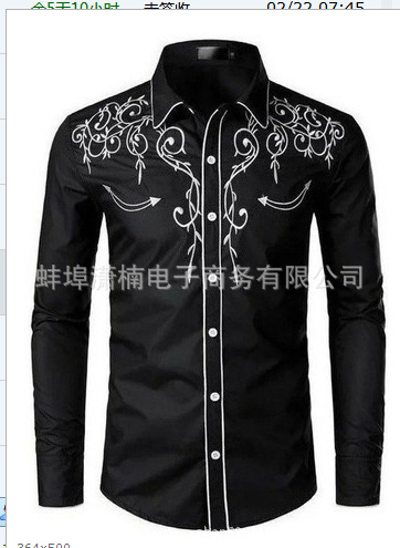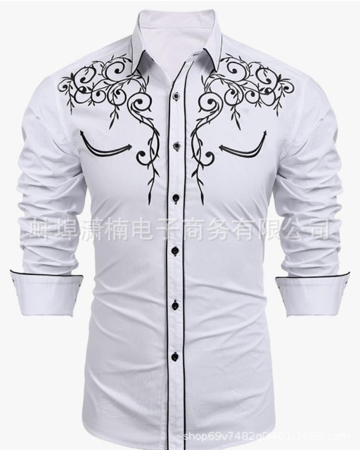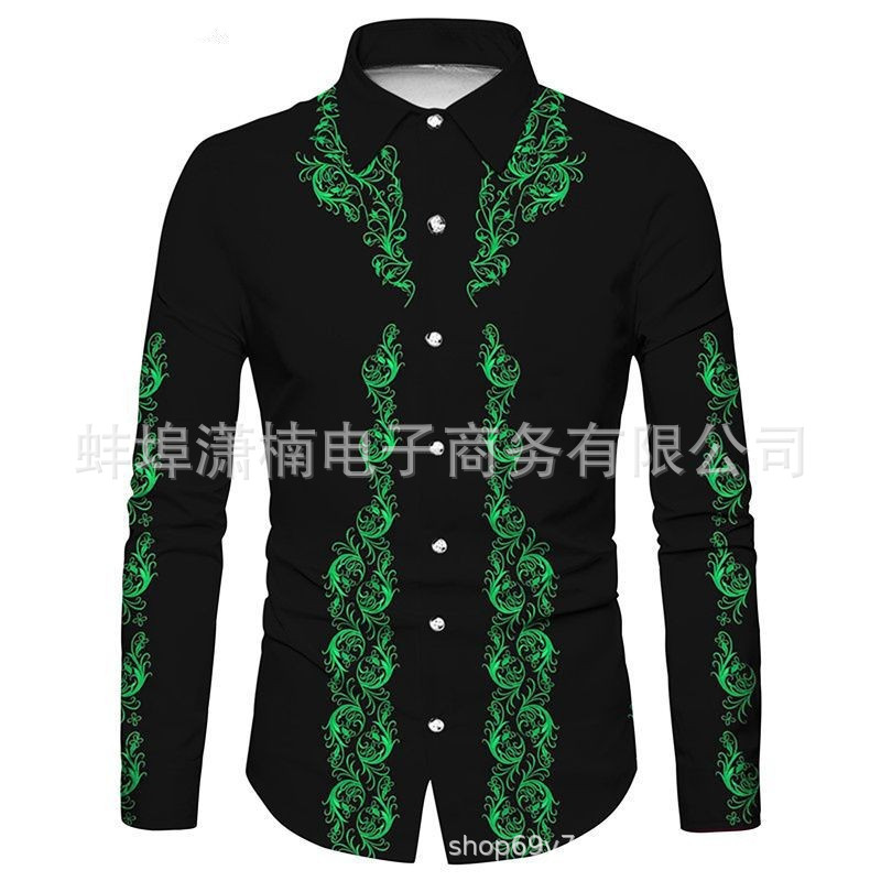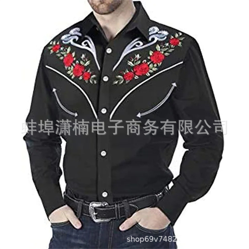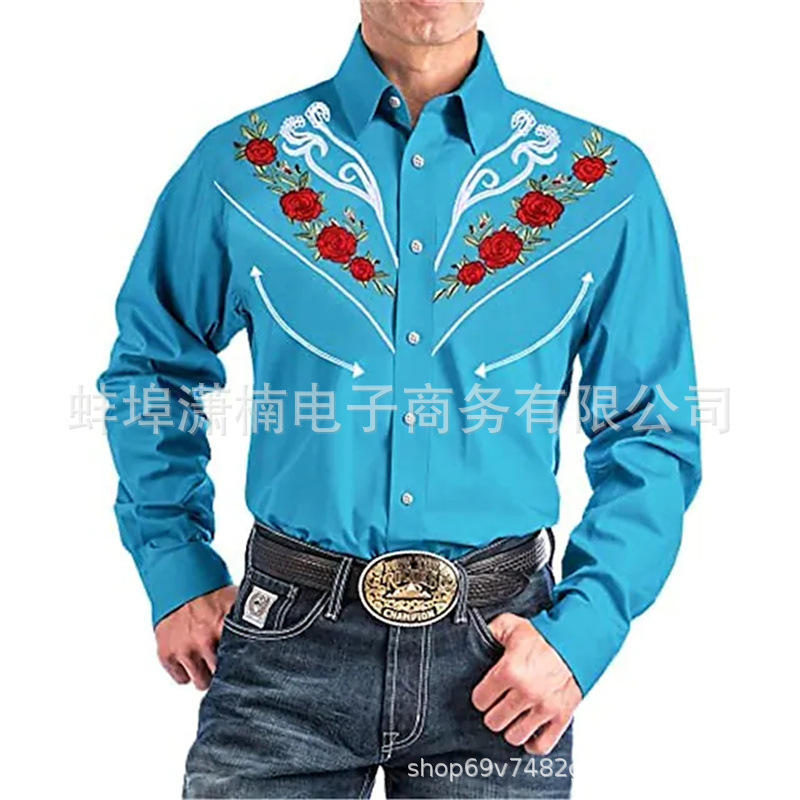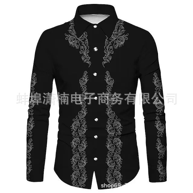 2023 새로운 서양 부족 민족 옷깃 남성 캐주얼 스포츠 야외 스트리트 긴 소매 버튼 탑 셔츠