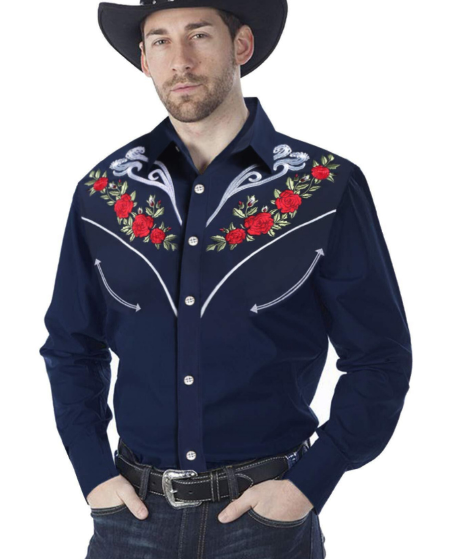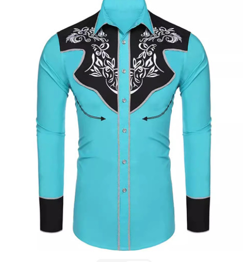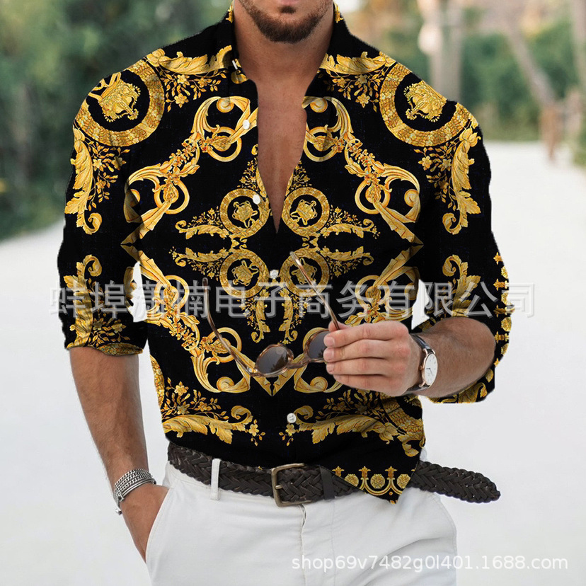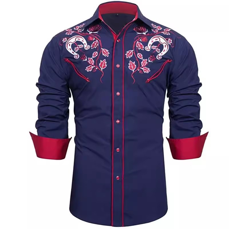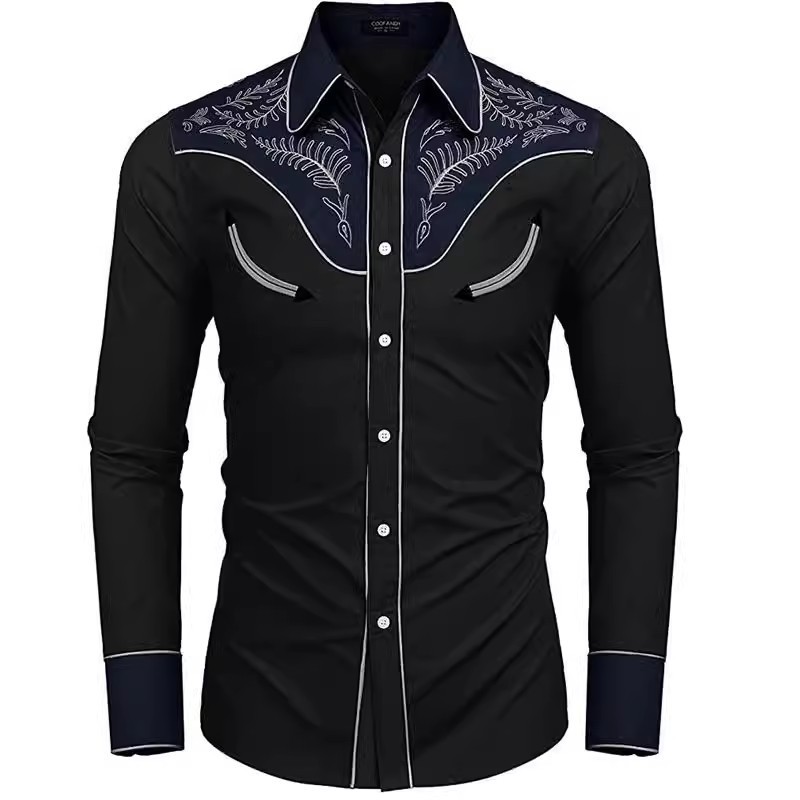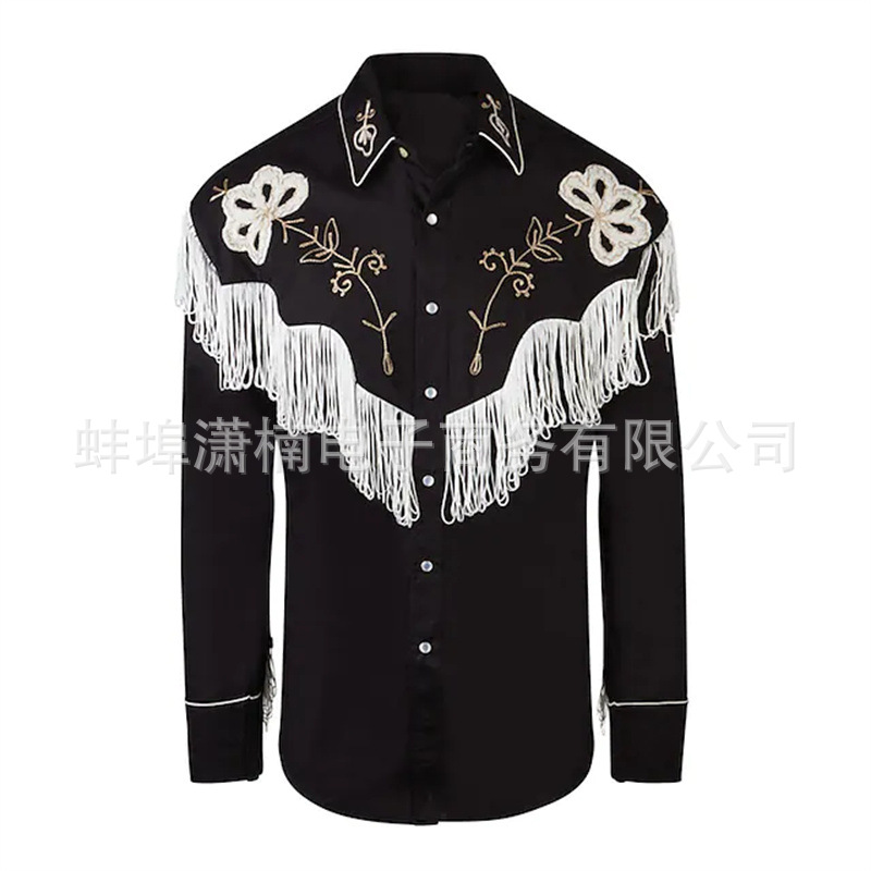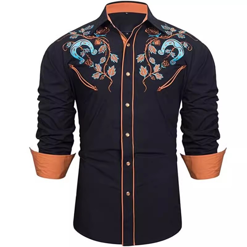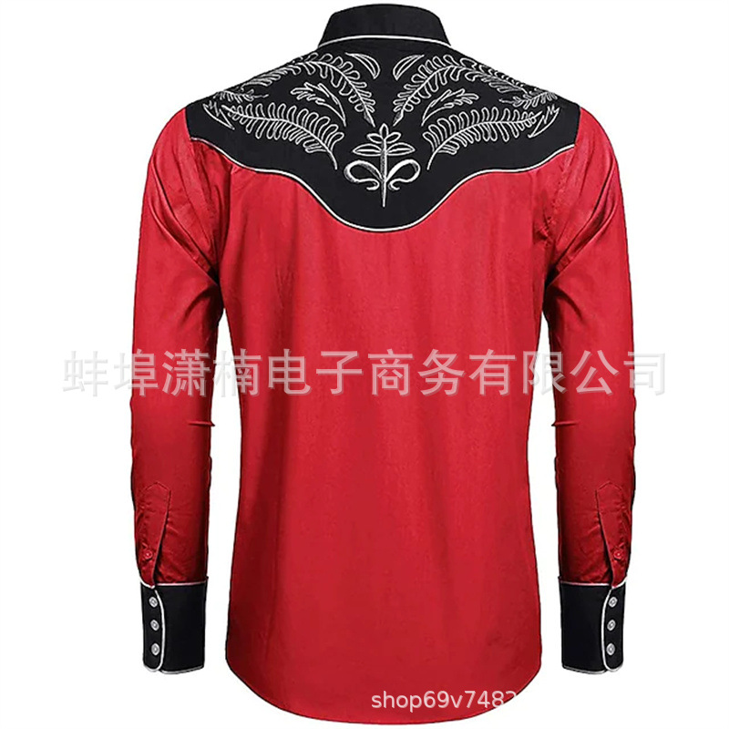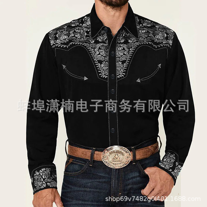 2023 새로운 서양 부족 민족 옷깃 남성 캐주얼 스포츠 야외 스트리트 긴 소매 버튼 탑 셔츠