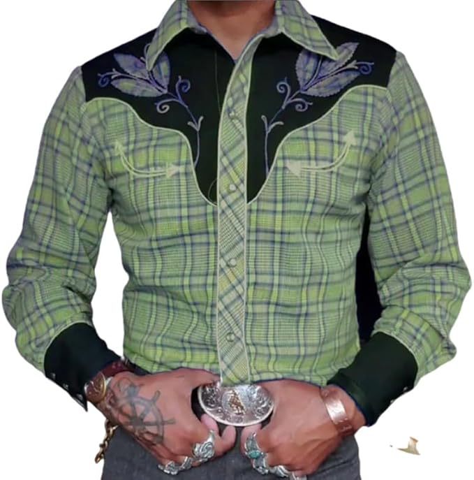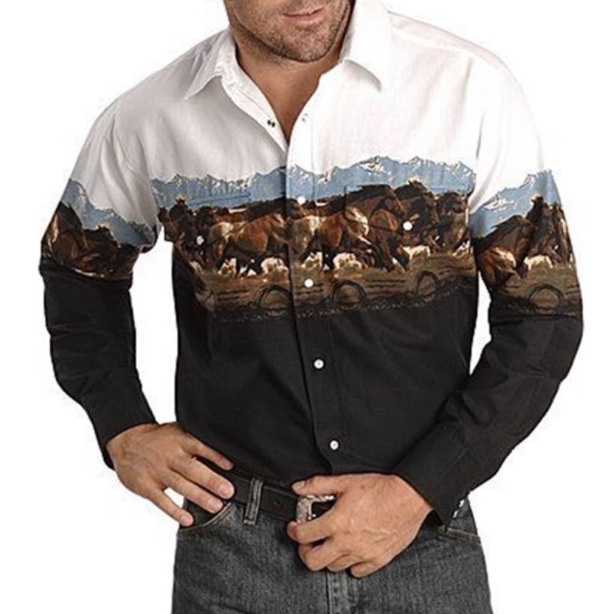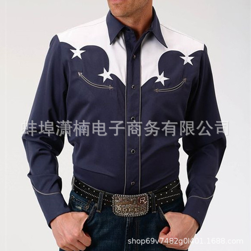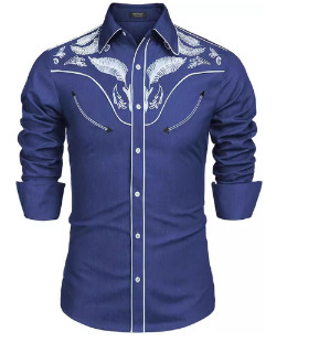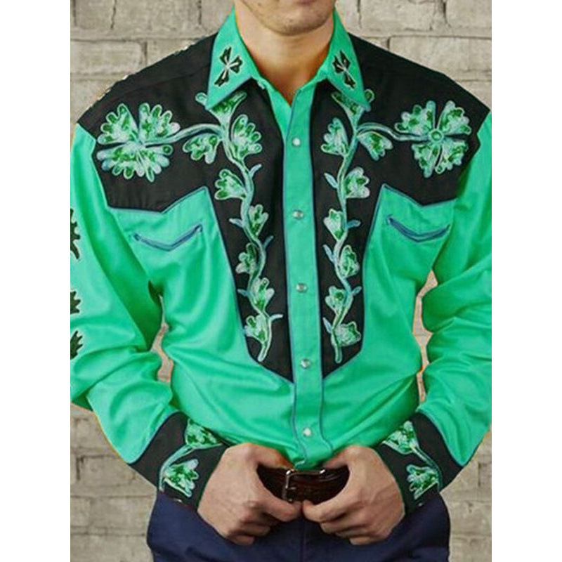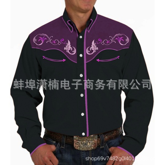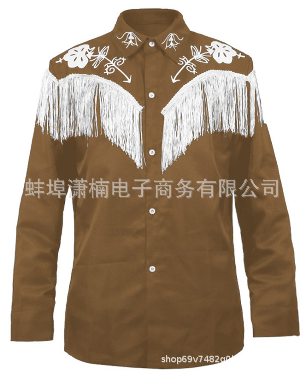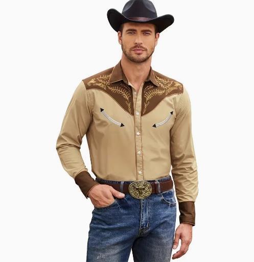 2023 새로운 서양 부족 민족 옷깃 남성 캐주얼 스포츠 야외 스트리트 긴 소매 버튼 탑 셔츠스토어 가기