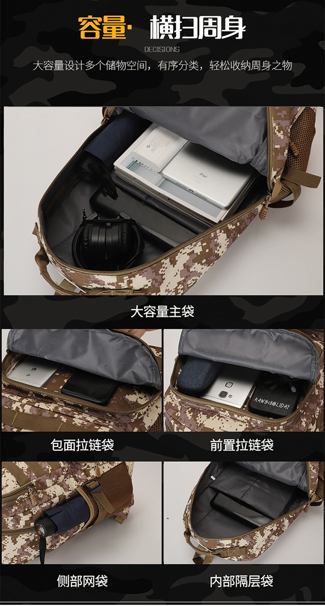 위장 야외 등산 가방 다기능 배낭 크로스 보더 대용량 확장 여행 가방 휴대용 하이킹 가방