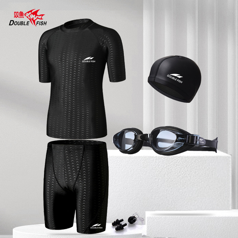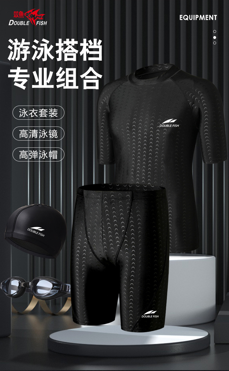 물고기 자리 남자의 모조 상어 수영복 플러스 사이즈 속건 방지 당황 태양 보호 복서 수영 트렁크 전문 수영 세트