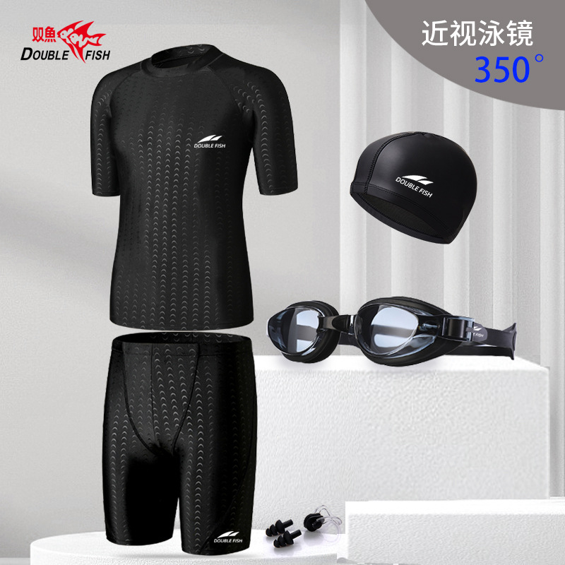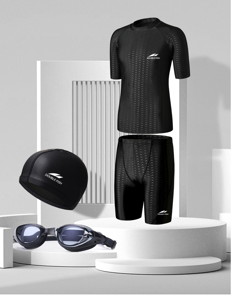 • 모조 상어 수영 트렁크 + 수영 모자 + 고글