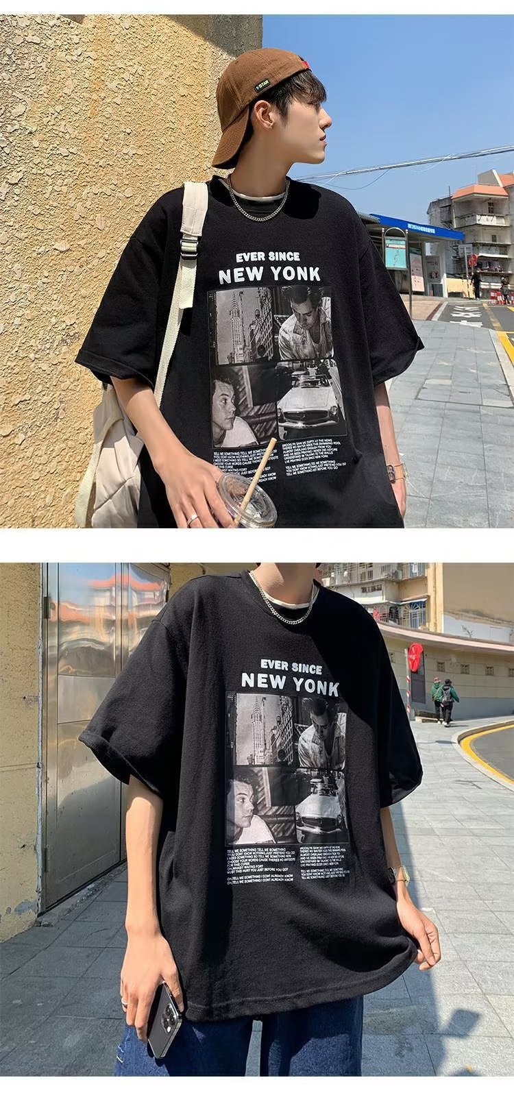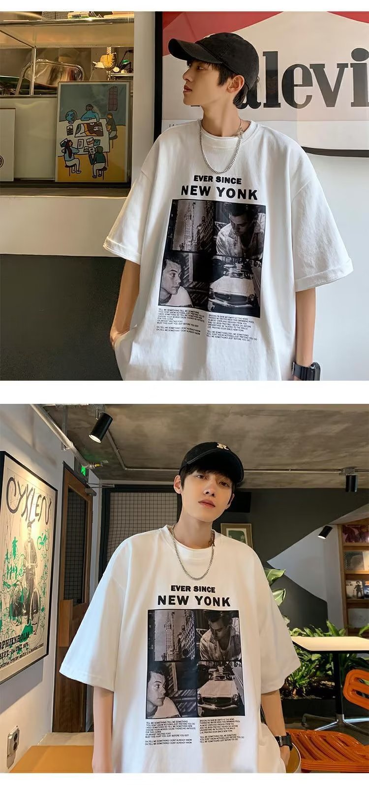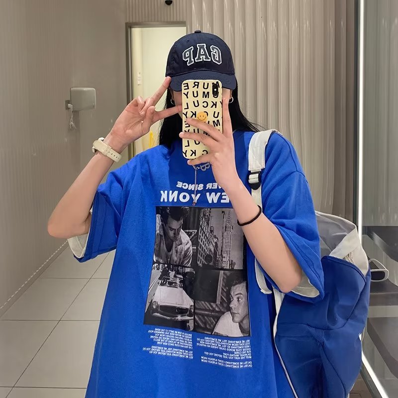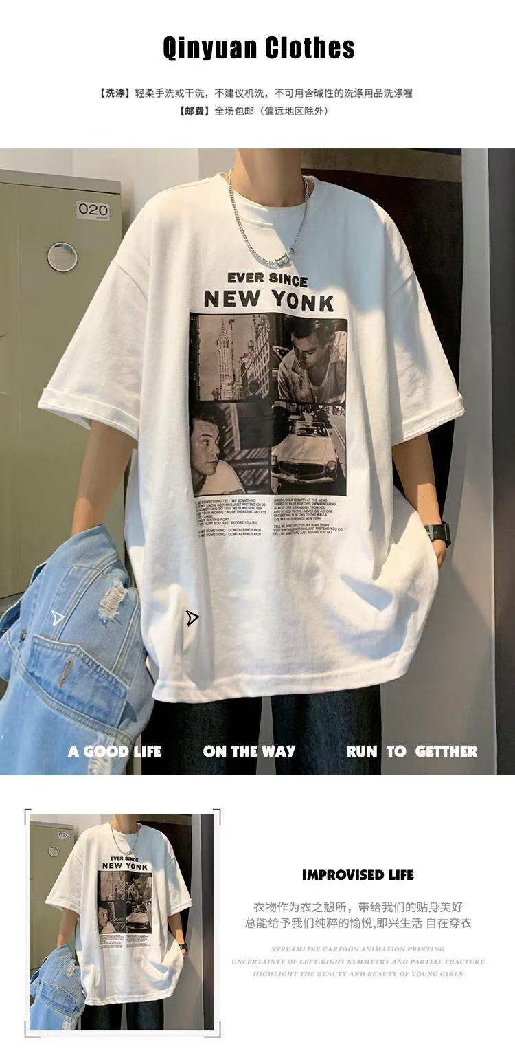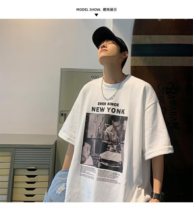 유럽과 미국 레트로 반팔 티셔츠 남성용 여름 최신 유행 브랜드 모든 매치 커플 루즈한 플러스 사이즈 반팔 티셔츠 베이스 셔츠스토어 가기
