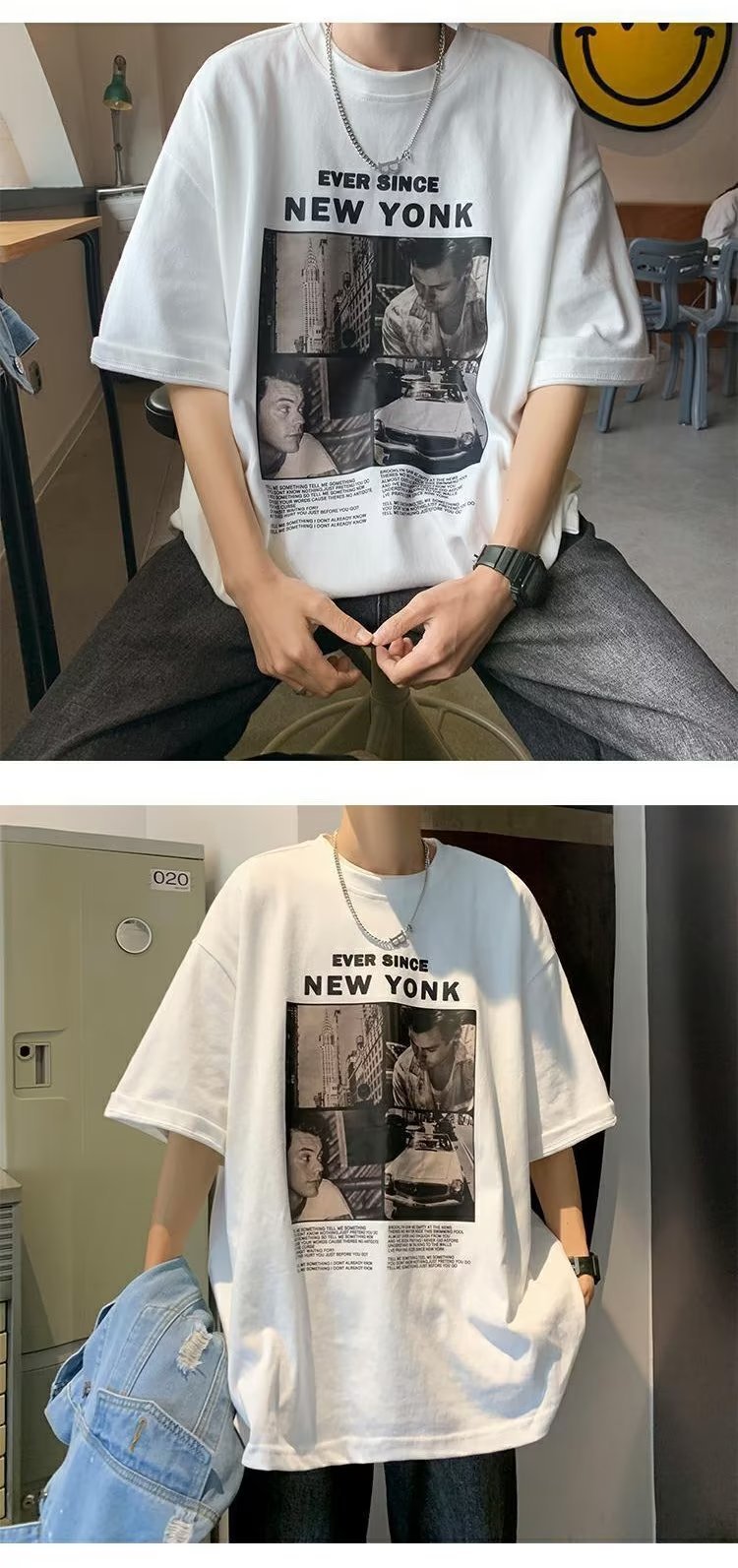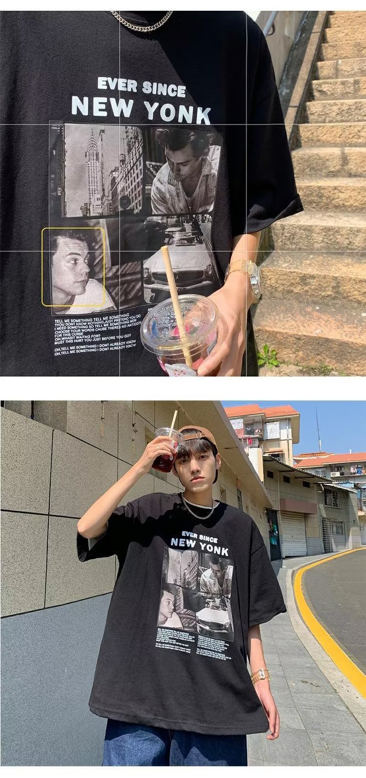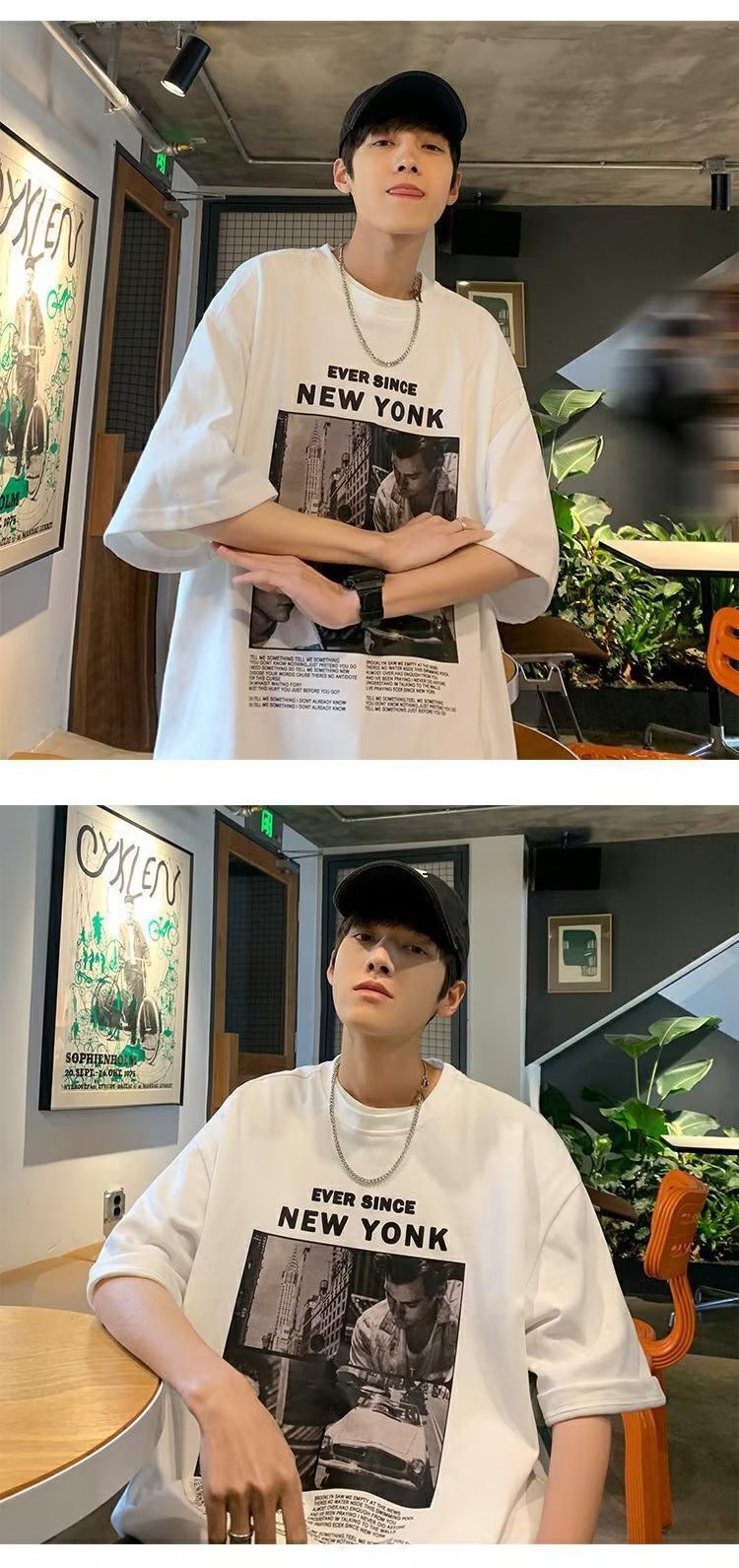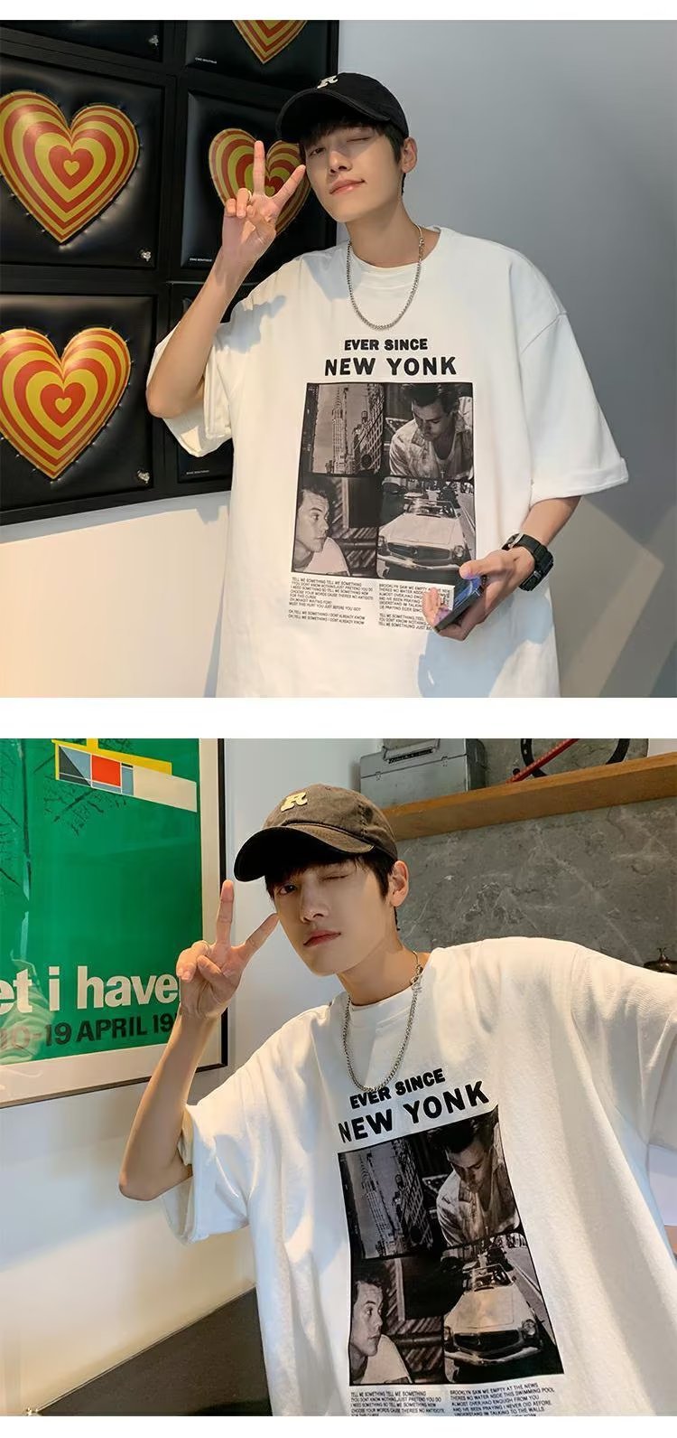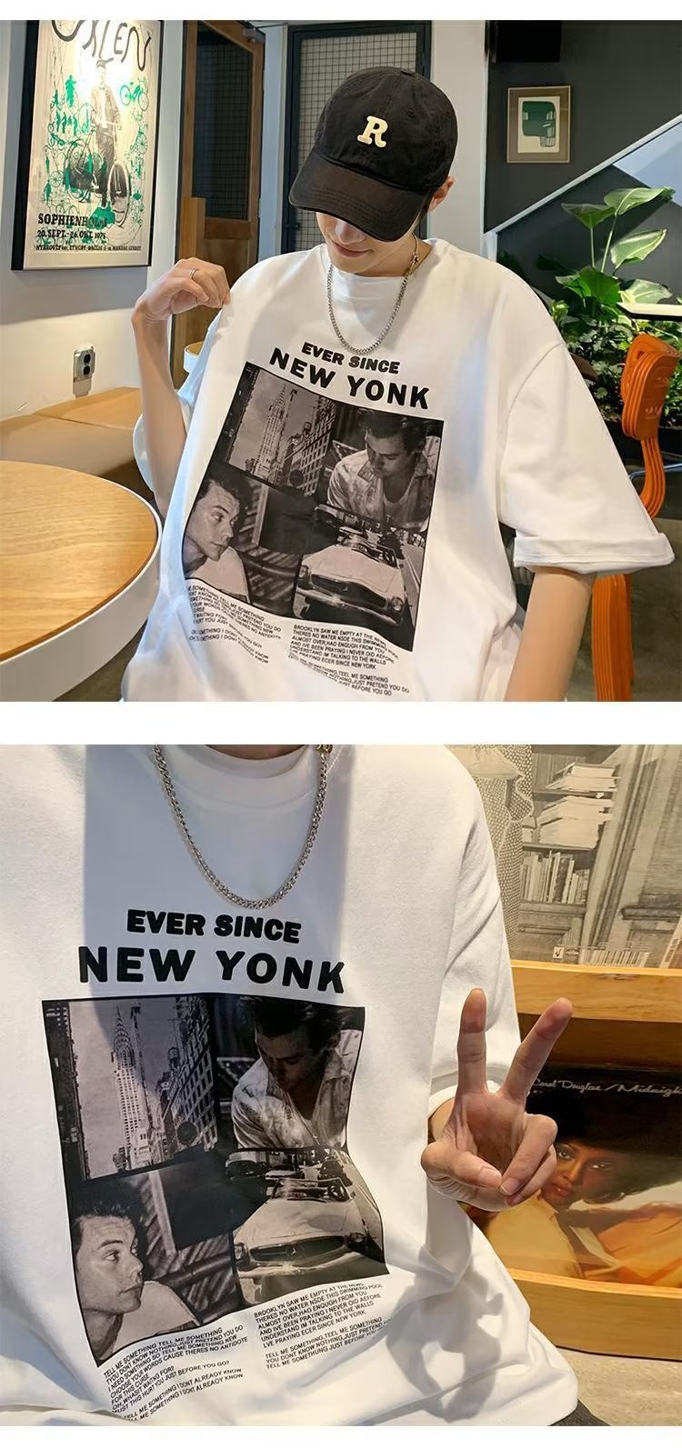 유럽과 미국 레트로 반팔 티셔츠 남성용 여름 최신 유행 브랜드 모든 매치 커플 루즈한 플러스 사이즈 반팔 티셔츠 베이스 셔츠스토어 가기