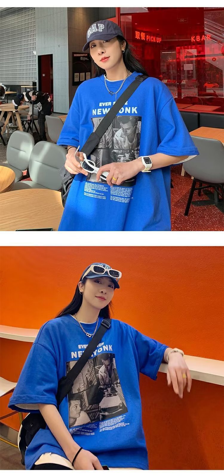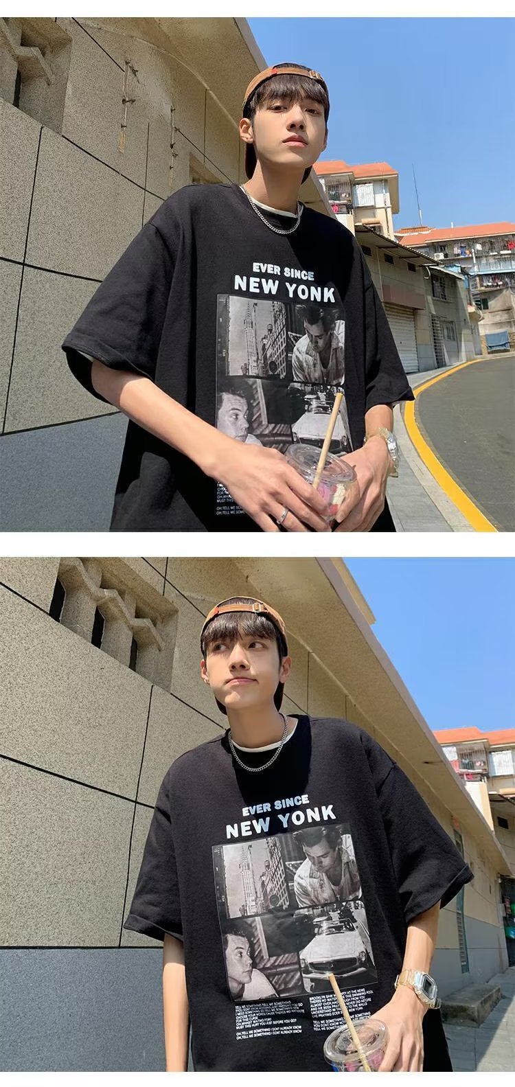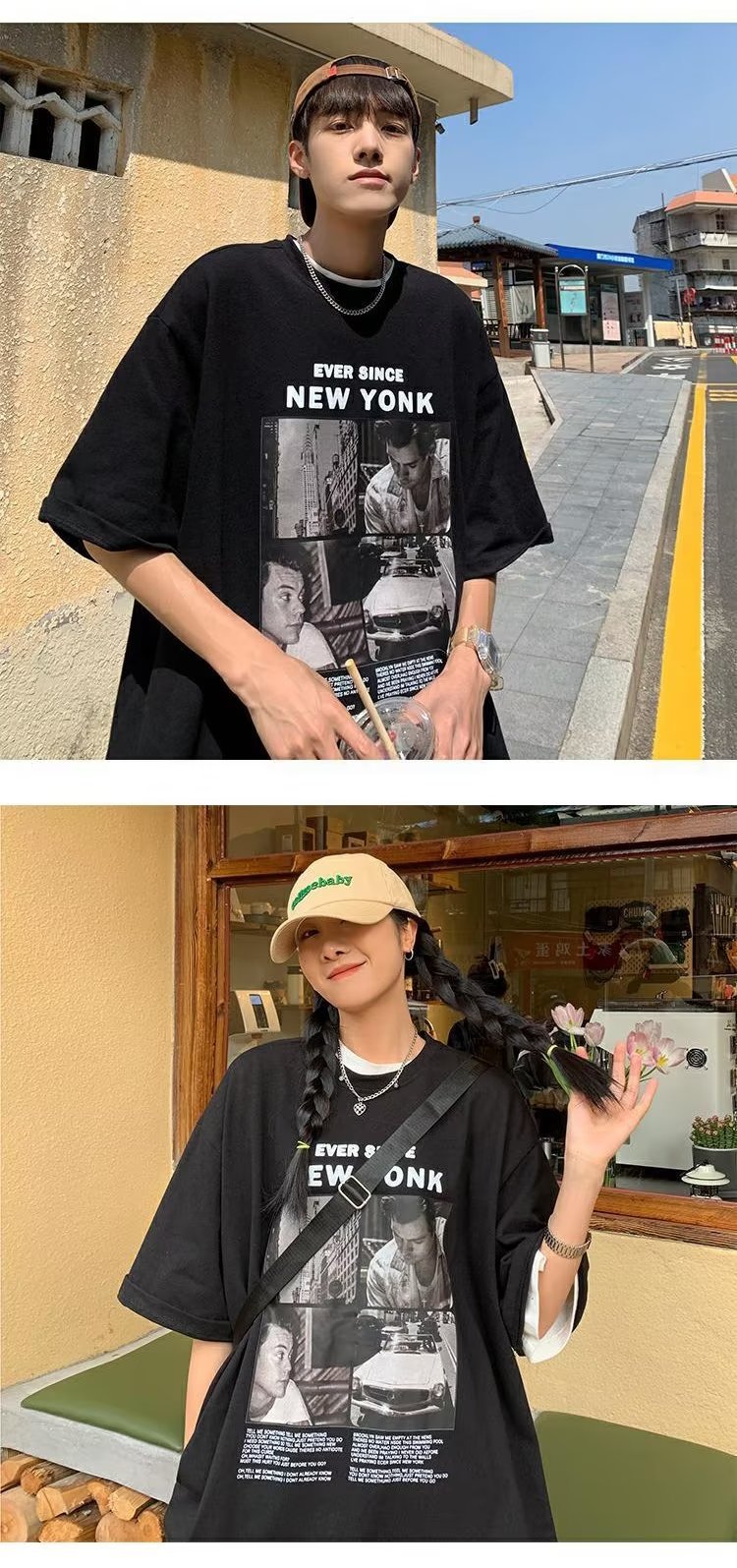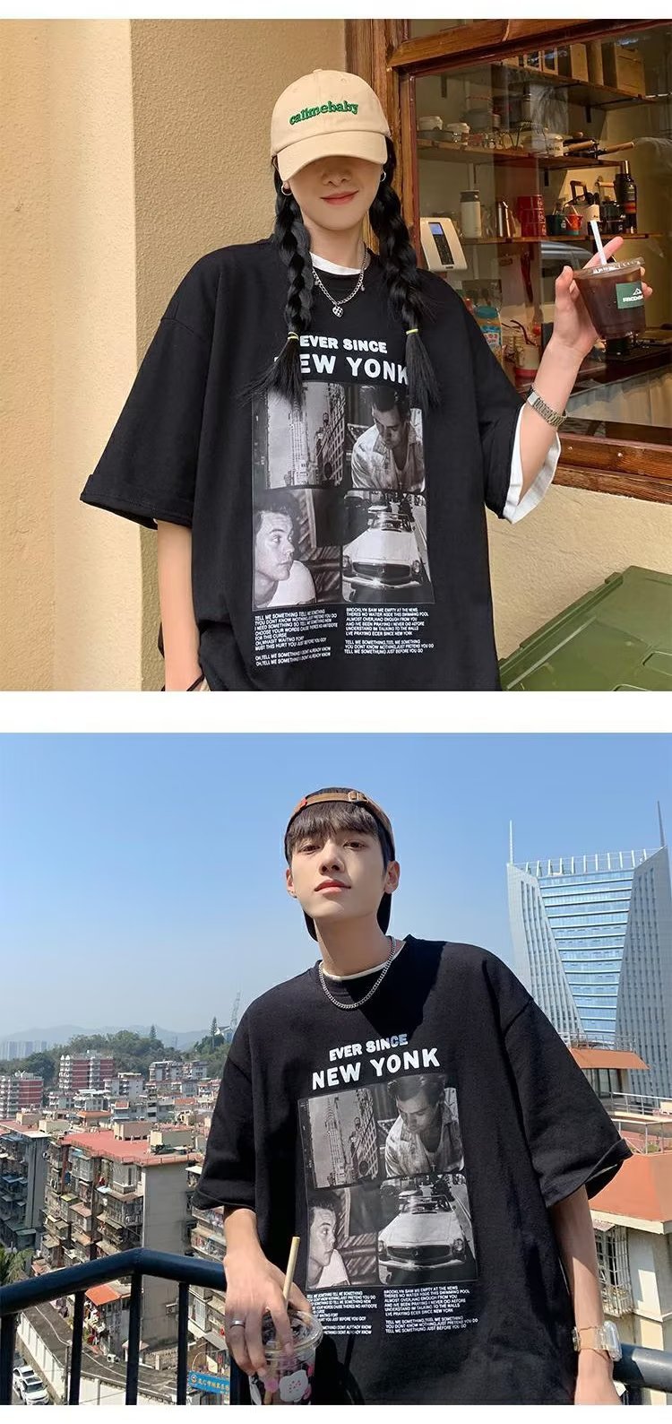 유럽과 미국 레트로 반팔 티셔츠 남성용 여름 최신 유행 브랜드 모든 매치 커플 루즈한 플러스 사이즈 반팔 티셔츠 베이스 셔츠스토어 가기