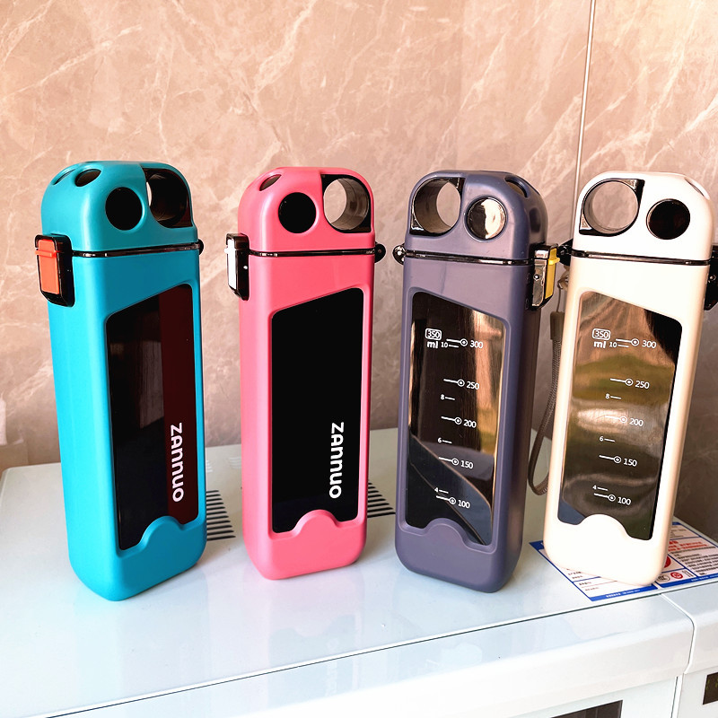 새로운 스타일 간단한 직사각형 물 컵 인터넷 연예인 컵 스타일 하이 컬러 값 흡입 파이프 컵 휴대용 낙하 방지 선물 주전자스토어 가기