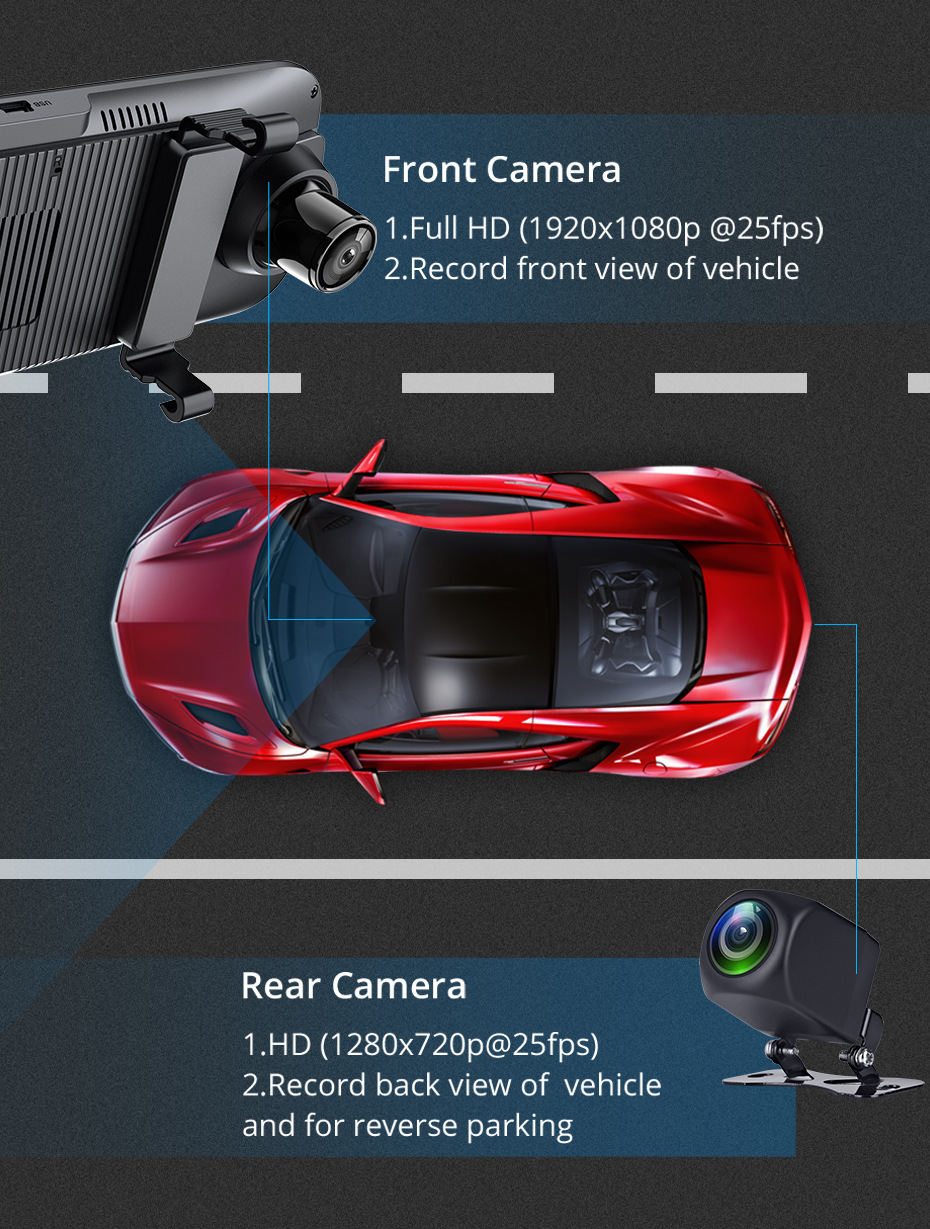 CE EU 표준 10 인치 전체 화면 4G 스마트 듀얼 1080p 스트리밍 미디어 백미러 운전 레코더스토어 가기