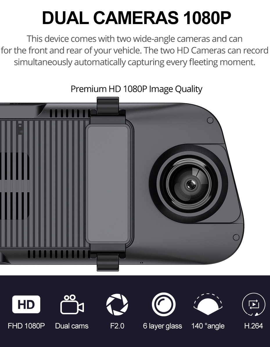 CE EU 표준 10 인치 전체 화면 4G 스마트 듀얼 1080p 스트리밍 미디어 백미러 운전 레코더