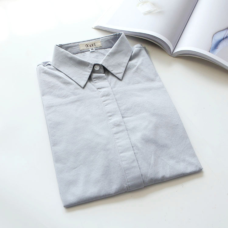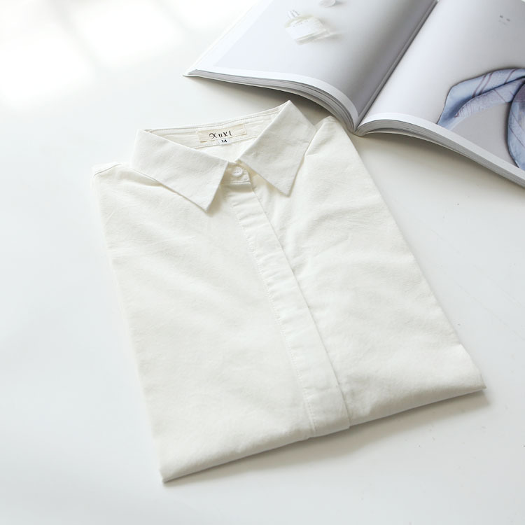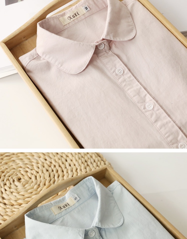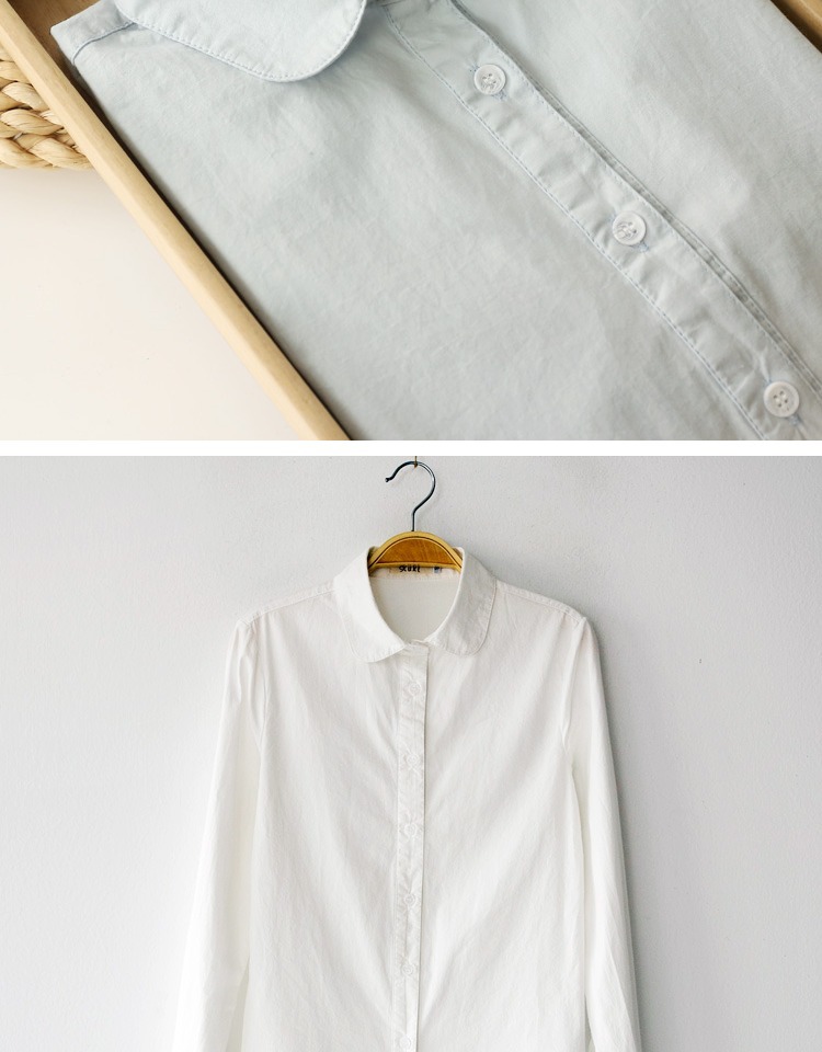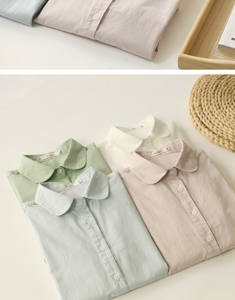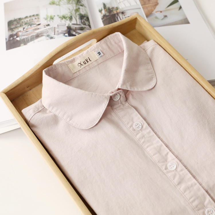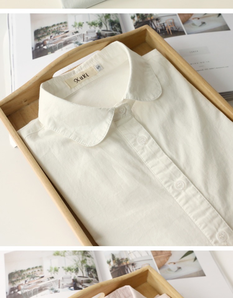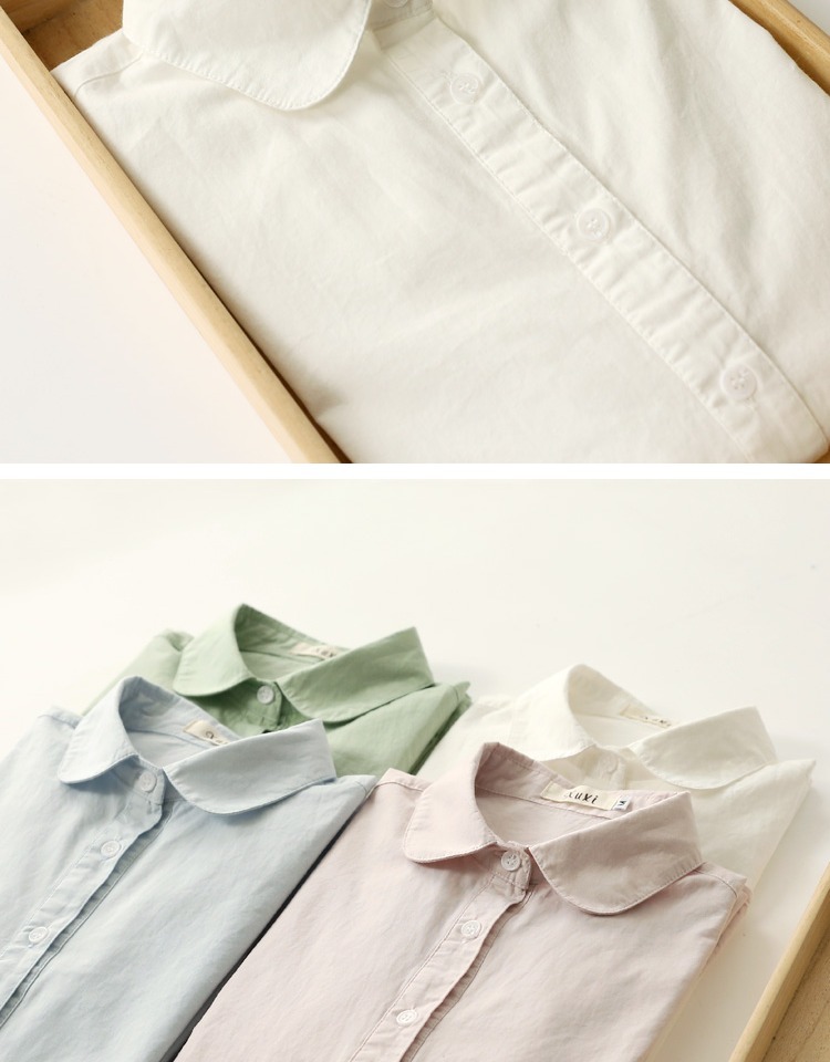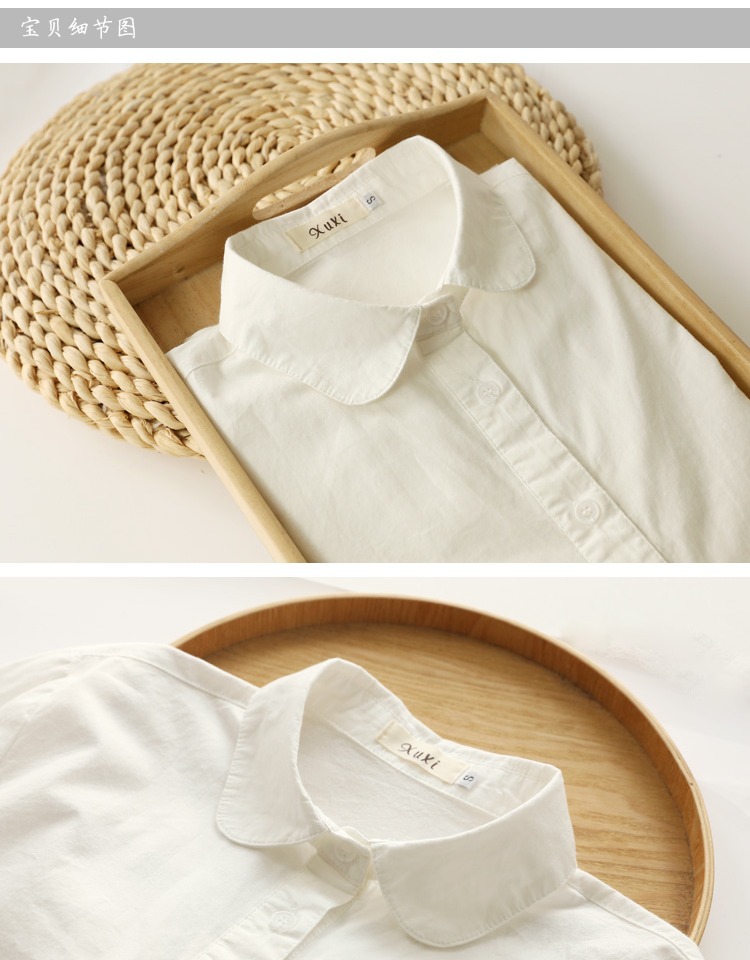 2023 봄과 가을 새로운 모든 매치 심플 인형 칼라 셔츠 화이트 셔츠 여성용 긴팔 학생 대학 인테리어 셔츠스토어 가기