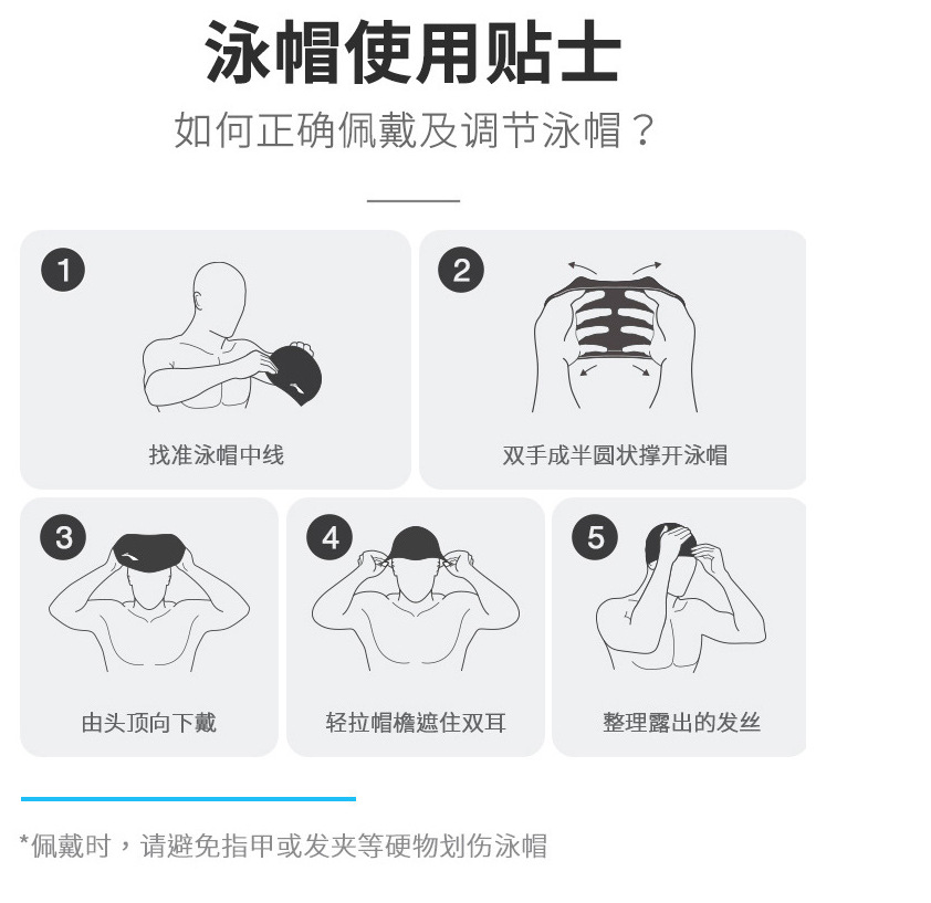 • 블랙 프레스 5 줄 나일론 천 수영 모자