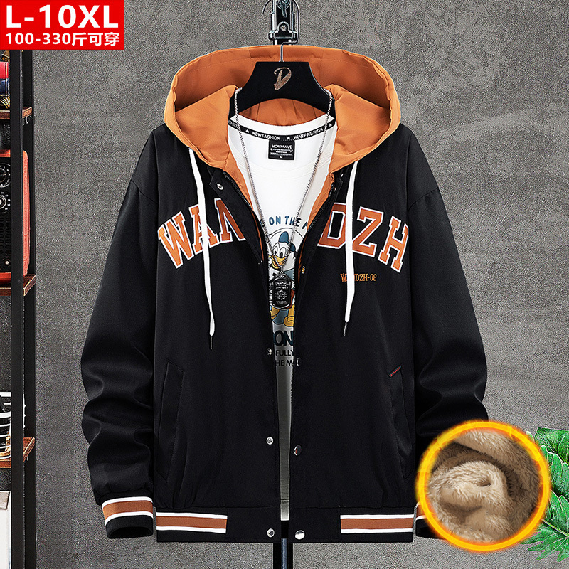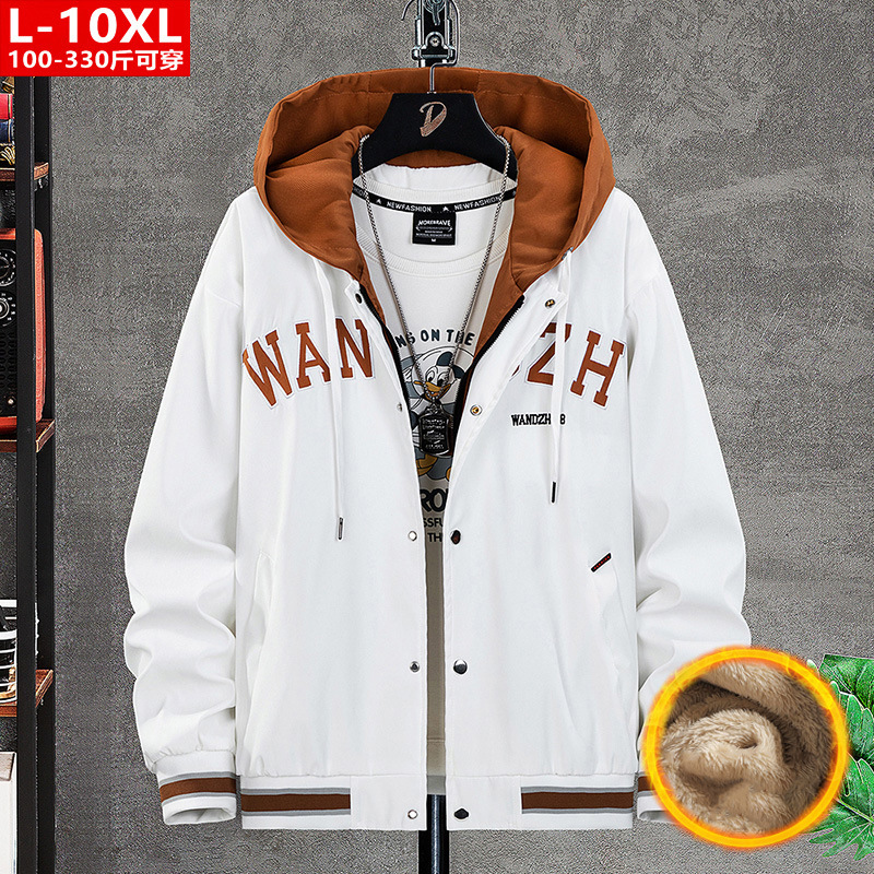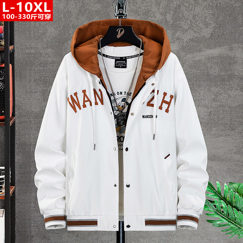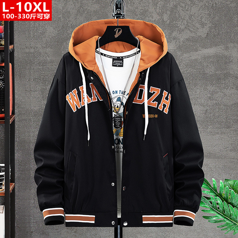 봄과 가을 유행 남자의 잘 생긴 수 놓은 가짜 투피스 후드 재킷 뚱뚱한 남자의 플러스 사이즈 느슨한 캐주얼 재킷