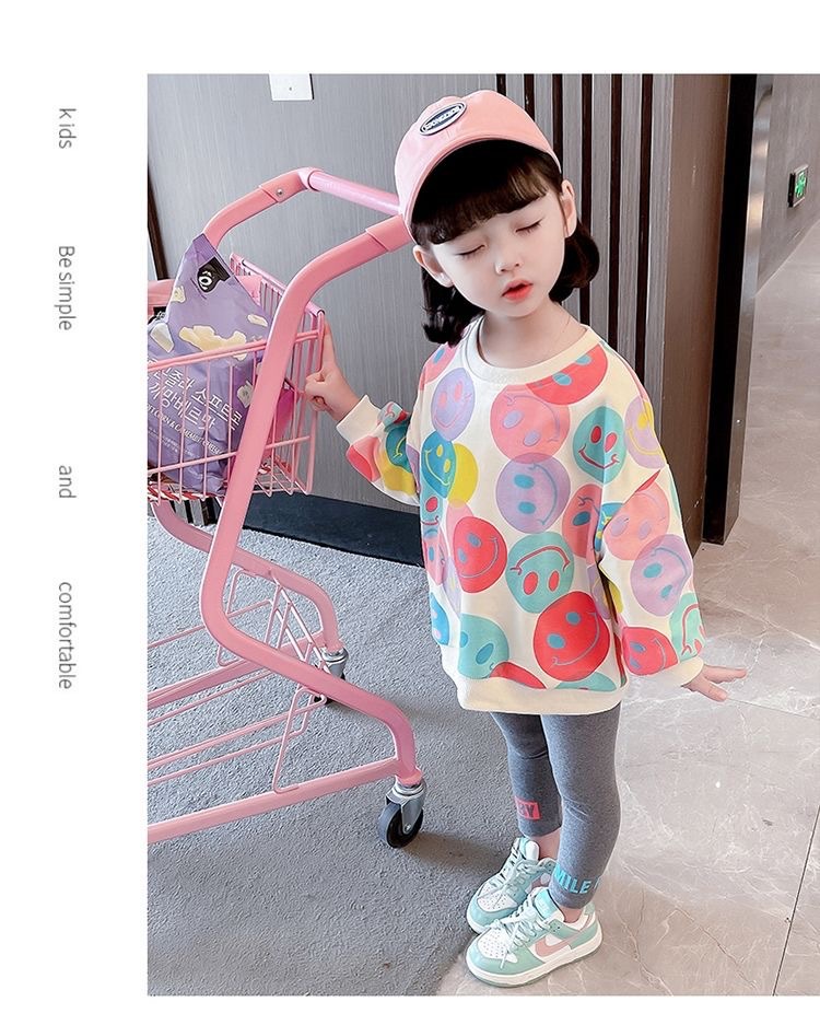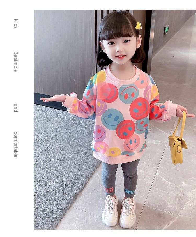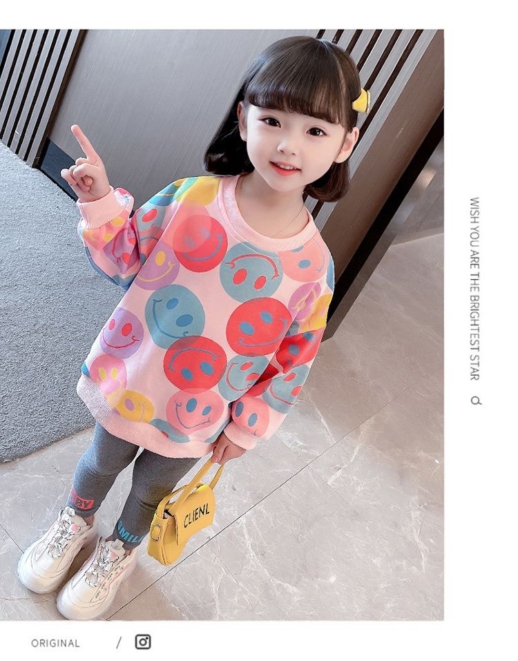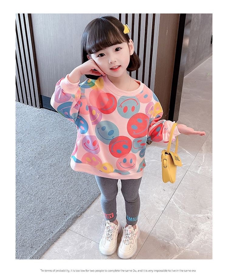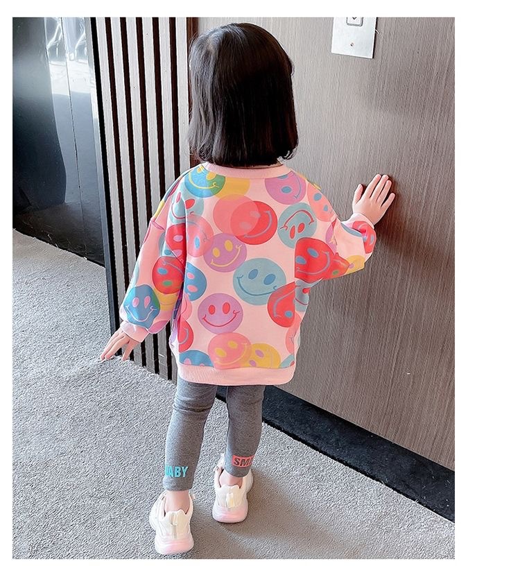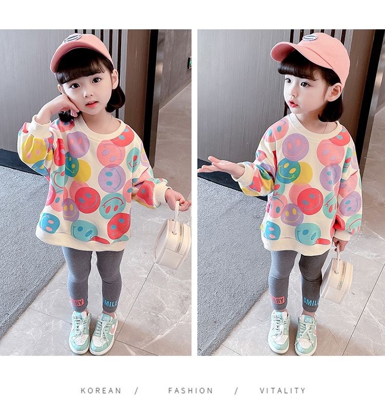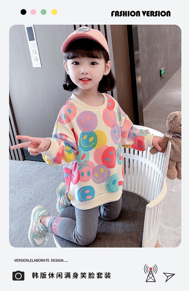 세트 봄과 가을 새로운 아이들의 세련된 모든 일치 만화 인쇄 스마일 유행 스웨터 투피스 세트스토어 가기