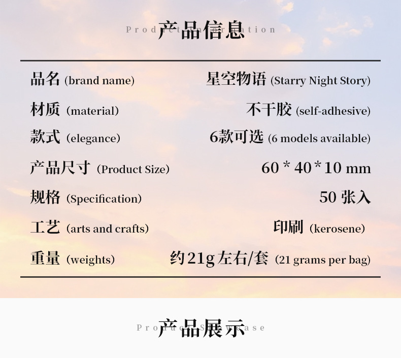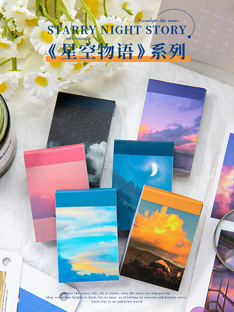 Yuezhen 별이 빛나는 하늘 이야기 ins 스타일 핸드북 스티커 국경 핸드북 소재 스티커 diy 크리 에이 티브 스티커 도서스토어 가기
