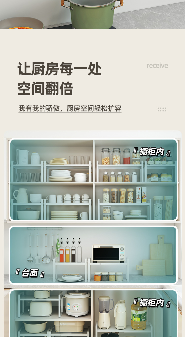 캐비닛 레이어드 랙 주방 개폐식 스토리지 랙 파티션 캐비닛 스토리지 조리대 더블 레이어 싱크 조미료 데스크탑스토어 가기
