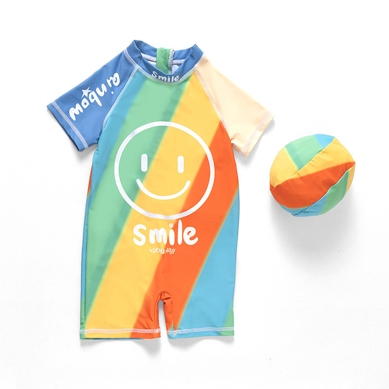 수영 신 레인보우 스마일리 소년 소녀를위한 어린이 원피스 수영복 아기 훈련 어린이를위한 빠른 건조 자외선 차단제 수영복