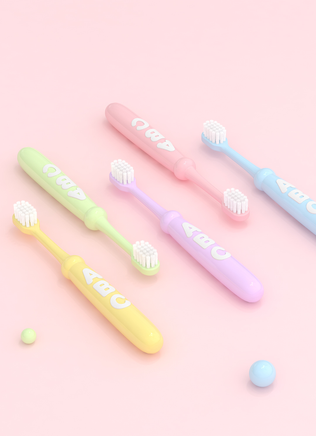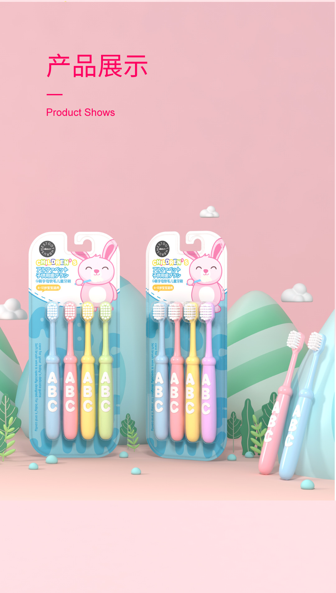 어린이 칫솔 마이크론 와이어 직경 3-9 세 아기 유연한 사랑스러운 편지 4 세트 부드러운 강모 칫솔 도매 공장 재고