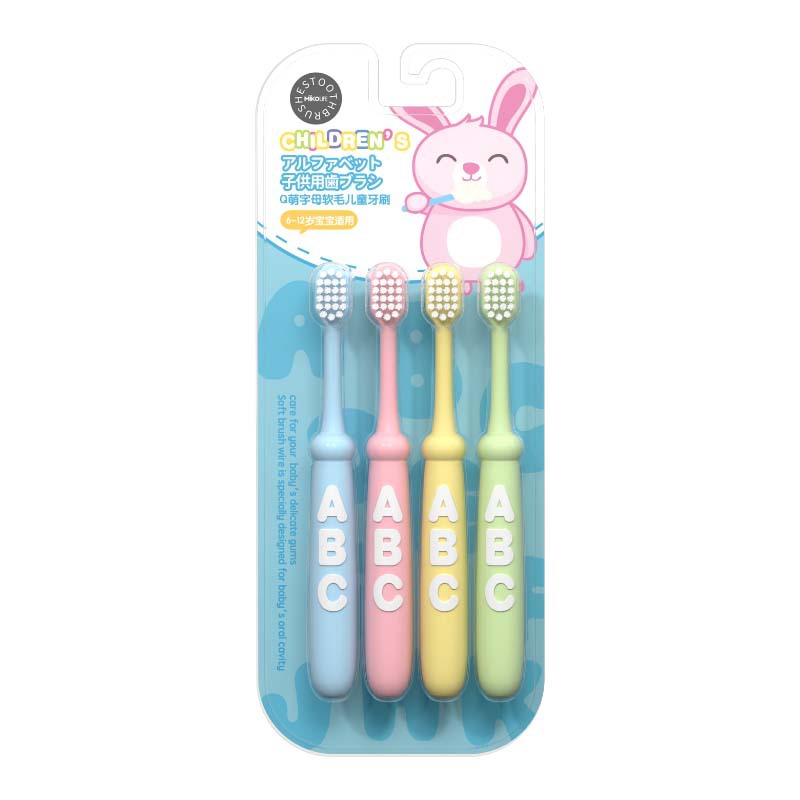어린이 칫솔 마이크론 와이어 직경 3-9 세 아기 유연한 사랑스러운 편지 4 세트 부드러운 강모 칫솔 도매 공장 재고스토어 가기