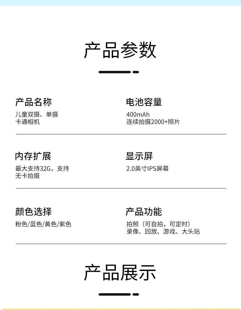 공장 직공급 어린이 디지털 2 인치 HD 만화 카메라 비디오 스마트 카메라 남녀 장난감 선물스토어 가기