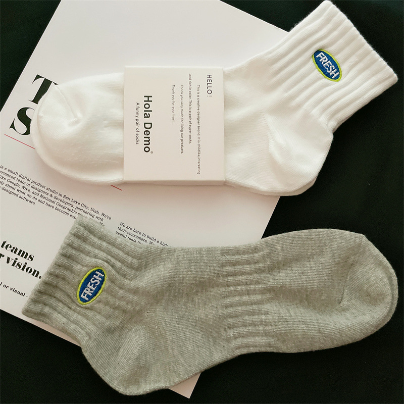 남자 양말 남자 봄 여름 짧은 양말 면 통기성 남성 및 여성 패션 편지 냄새 방지 흰색 스포츠 양말스토어 가기