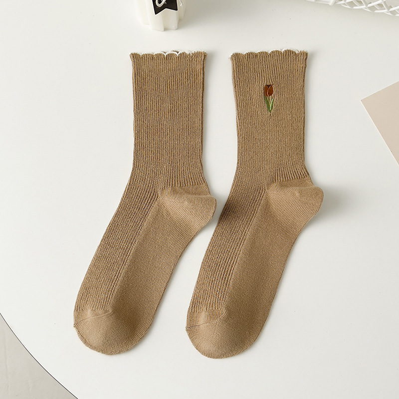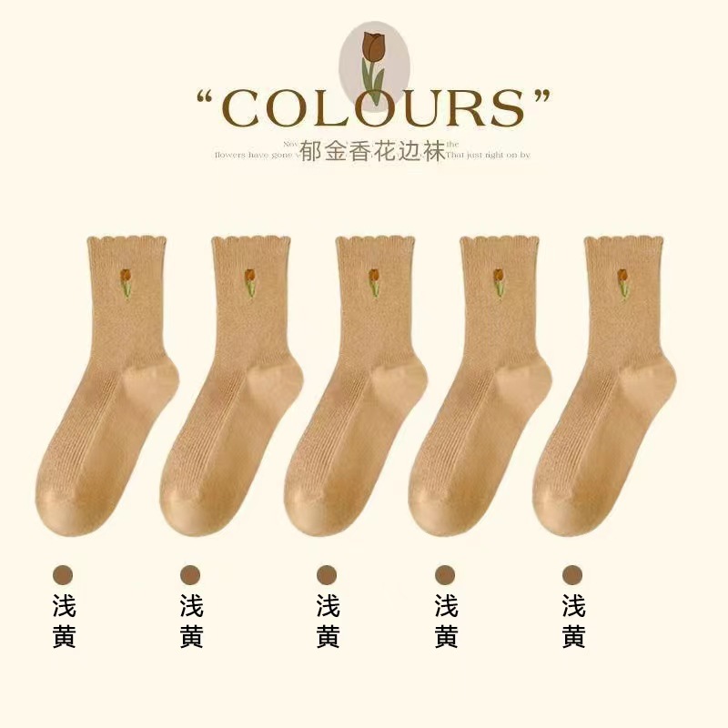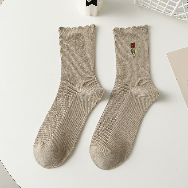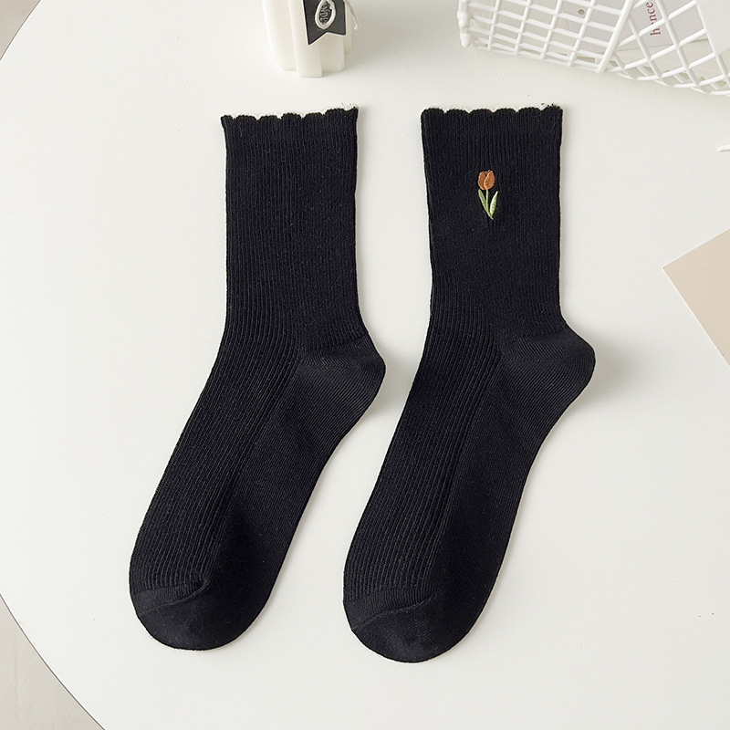 양말 여성 레이스 자수 여성 튜브 양말 봄과 여름 얇은 통기성 소녀 대학 스타일 스타킹 도매