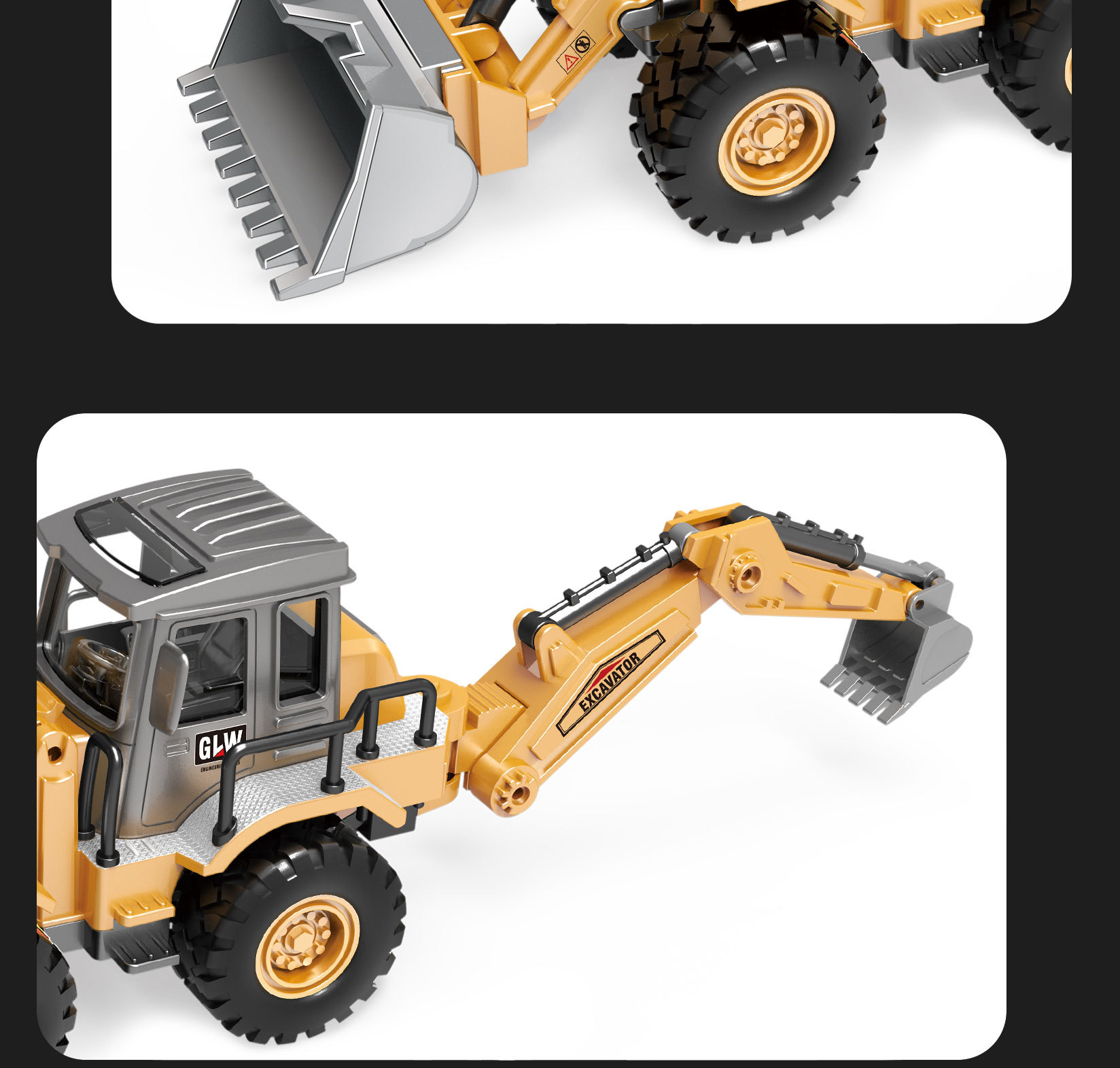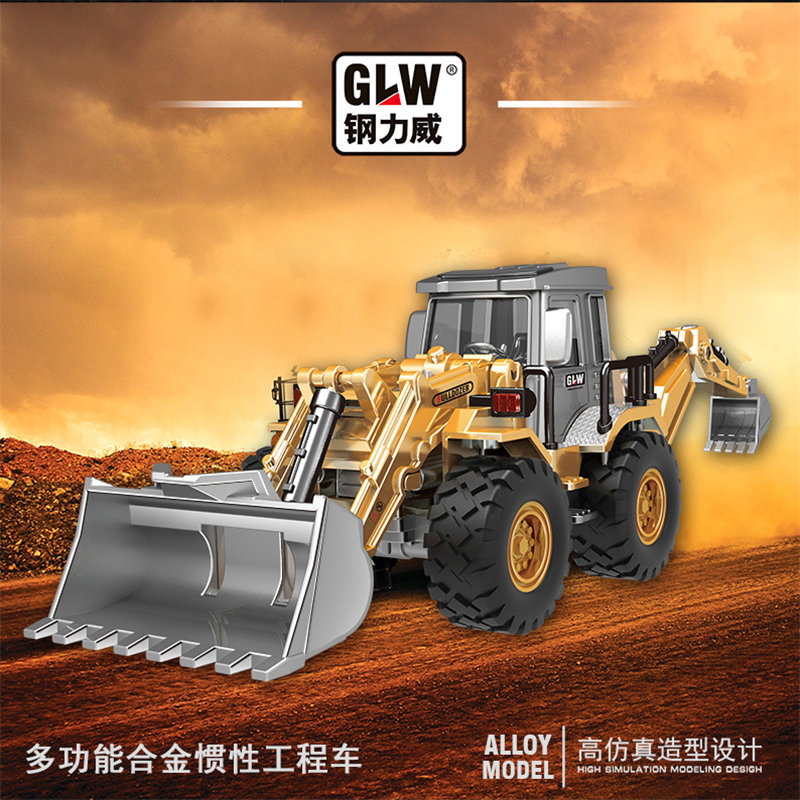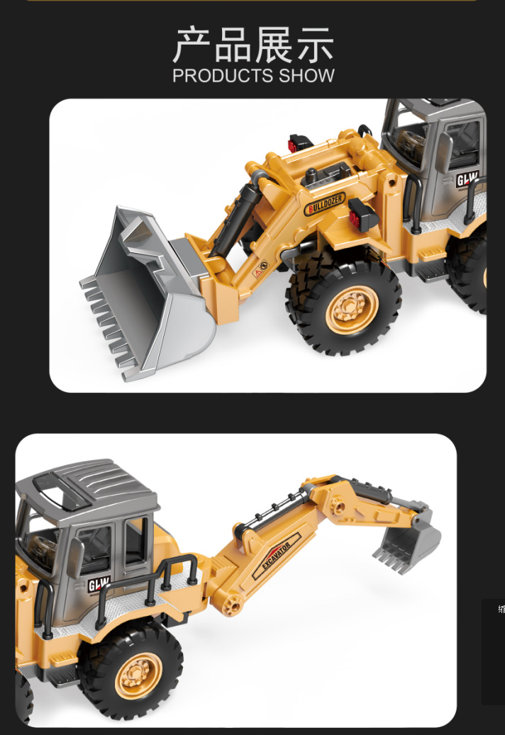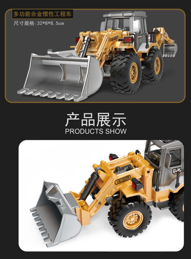 국경을 넘는 관성 합금 헤드 이중 기능 불도저 굴삭기 엔지니어링 차량 슬라이딩 모델 어린이 장난감 생일 선물