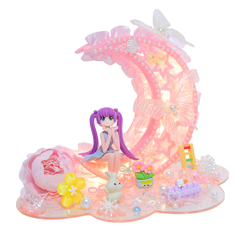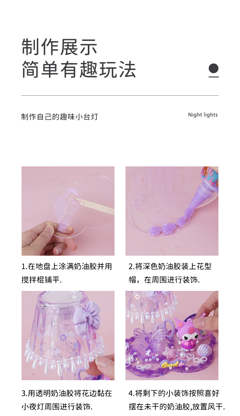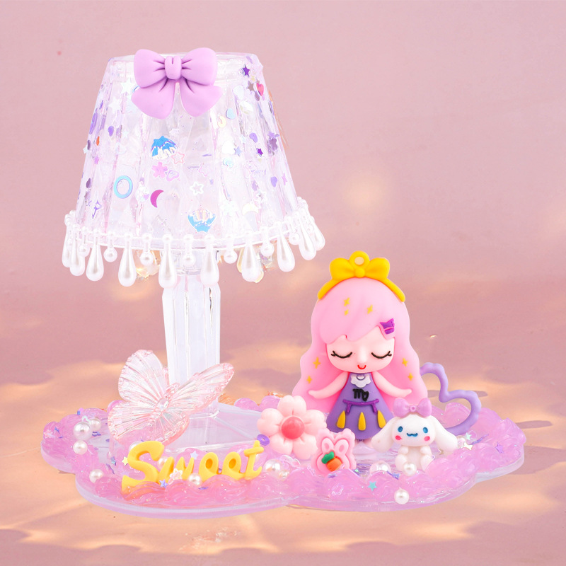 어린이 DIY 수제 크림 글루 크리스탈 야간 조명 재료 패키지 세트 창의적인 작은 테이블 램프 소녀들을 위한 교육용 장난감스토어 가기