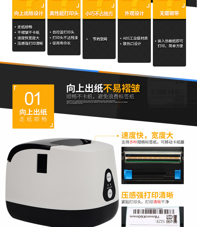 Jiabo 2270T 열 바 코드 라벨 프린터 슈퍼마켓 계산원 태그 스티커 의류 우유 차 가게스토어 가기