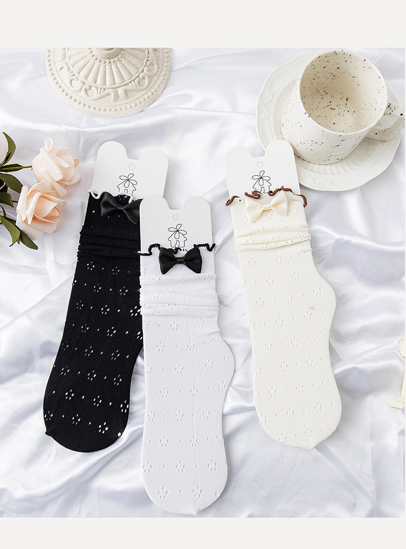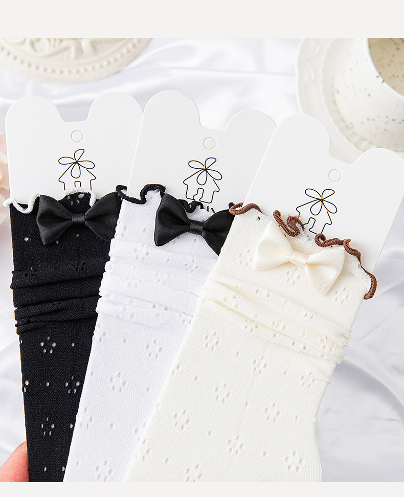 여아 스타킹 여름 얇은 어린이 중공 메쉬 공주 스타일 귀 나비 여아 아기의 중간 길이 스타킹
