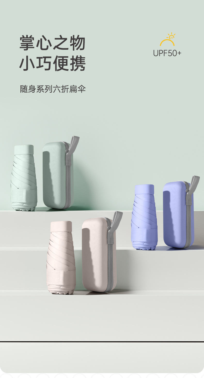 블랙 고무 선 스크린 자외선 차단 차양 단색 카드 가방 6 배 우산 휴대용 인터넷 연예인 미니 우산 인쇄 로고