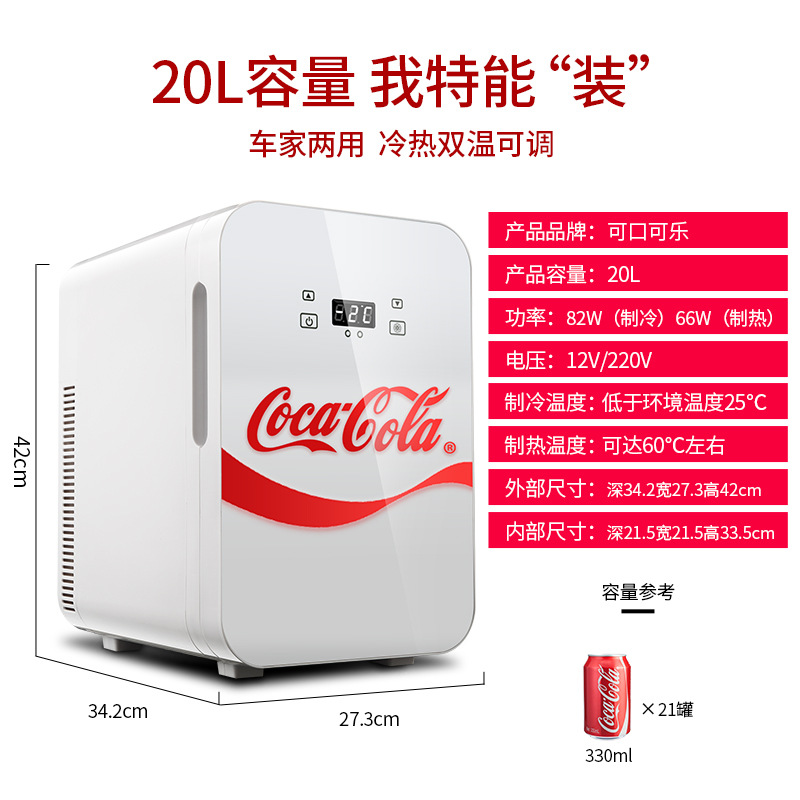 코카콜라 코카콜라 자동차 냉장고 20L 소형 냉장고 디지털 온도 제어 자동차 가정 이중 용도 선물 도매