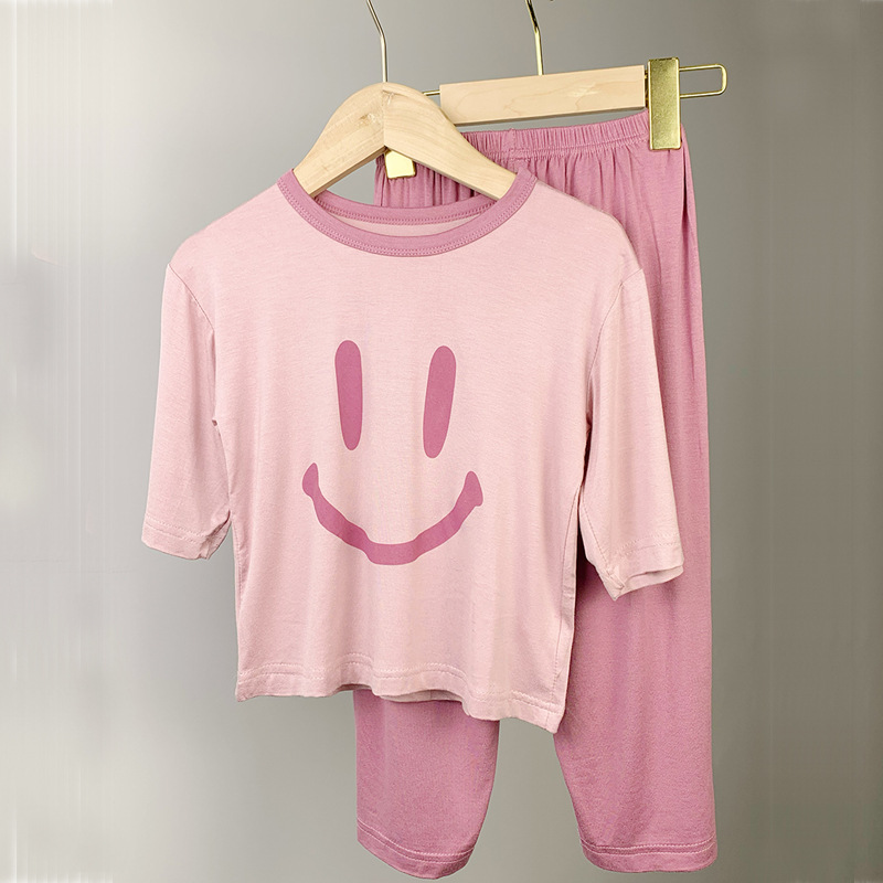 부모-자식 잠옷 여름 어린이 모달 7 소매 세트 대형 어린이 느슨한 에어컨 옷 소년 소녀 가정복